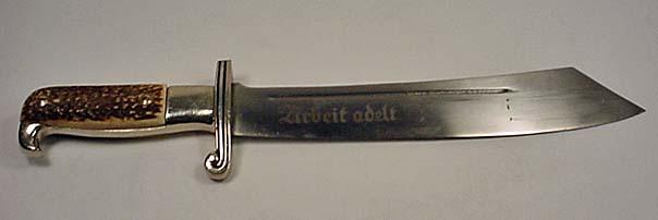 WW2 GERMAN NAZI RAD EM LABOR DAGGER W/ SCABBARD - Blade is maker marked Alcoso ACS Solingen. Stag handle grips.