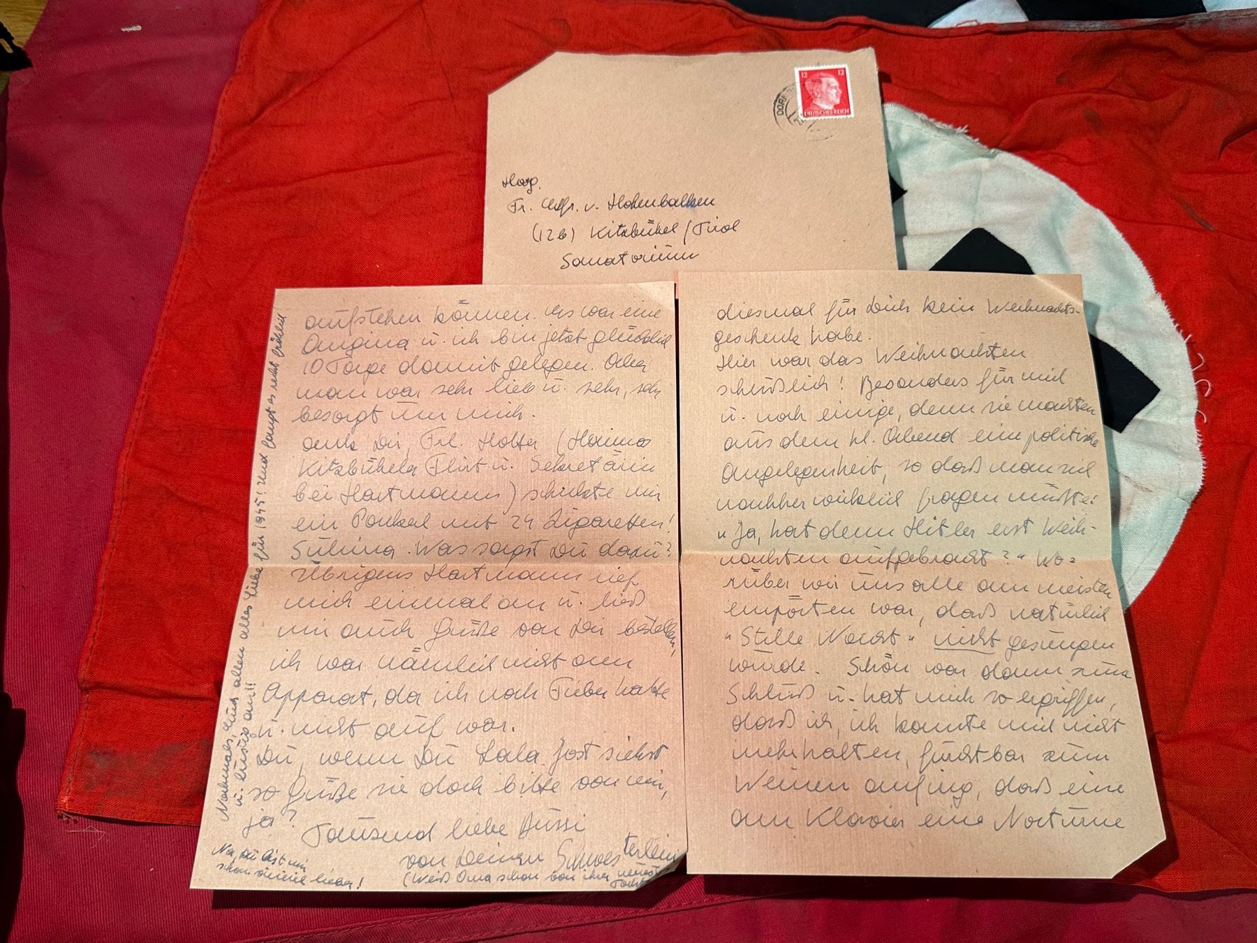 WW2 GERMAN NAZI SOLIDER MAILED LETTERS IN EVELOPE WITH A. HITLER STAMP. A RARE FIND. IT IS IN MINT OVERALL SHAPE AND CONDITION WITH A BEAUTIFUL OVERALL PATINA. SHOWS GOOD WEAR AND USE. PLEASE VIEW ALL DETAILED PICTURES. A GREAT FIND AND AN EXCELLENT ADDITION TO YOUR COLLECTION.