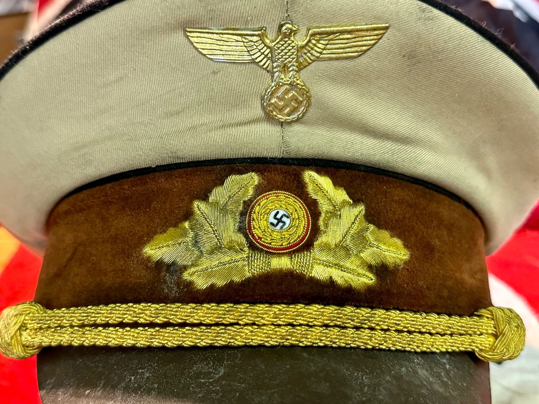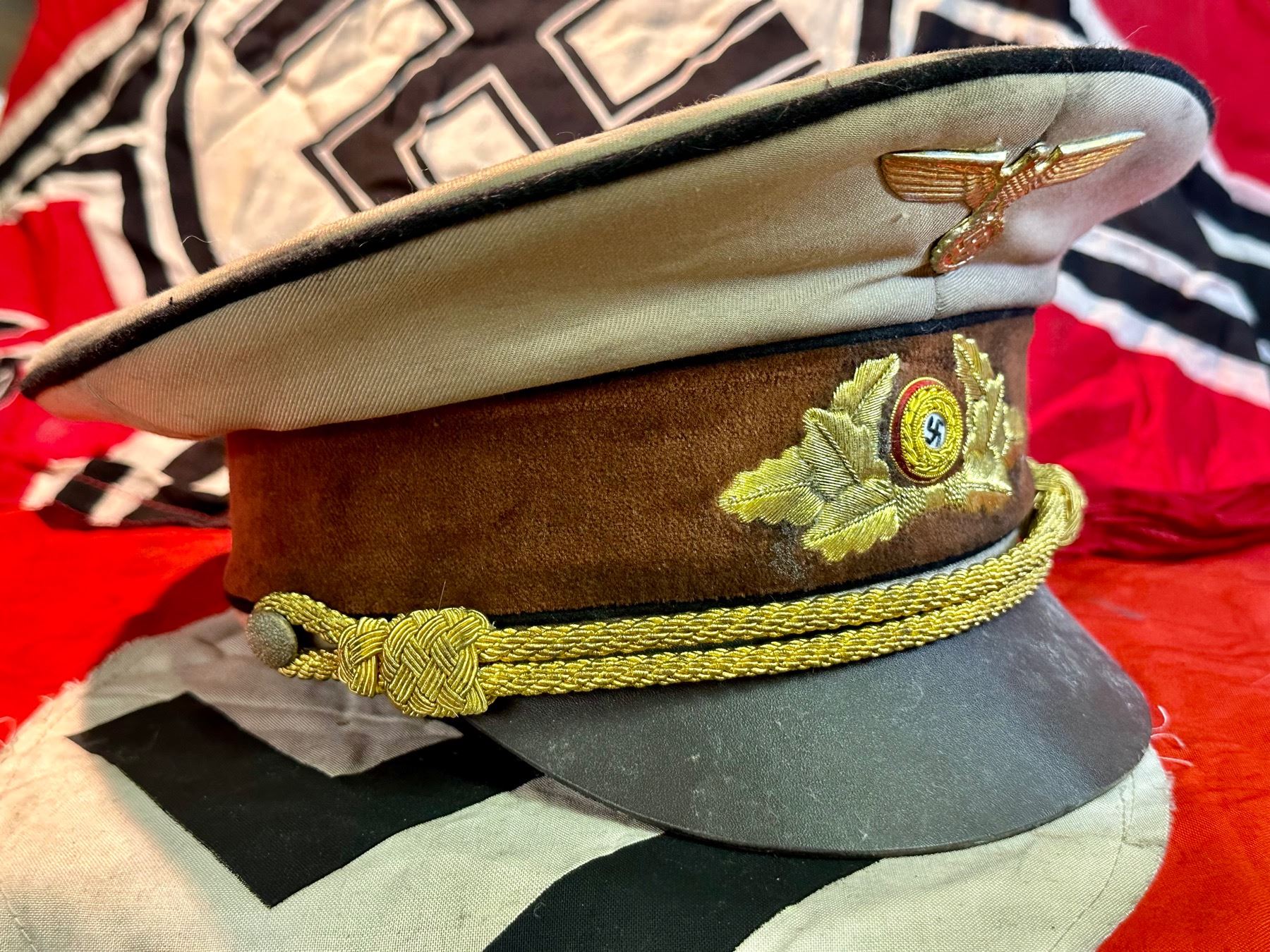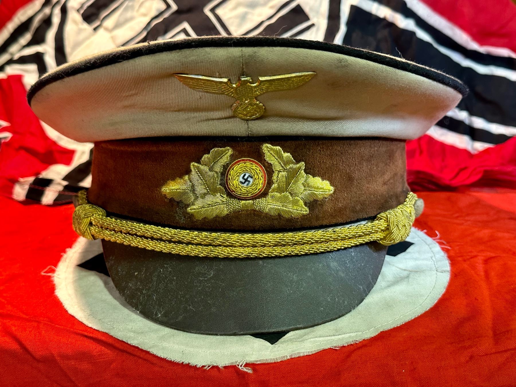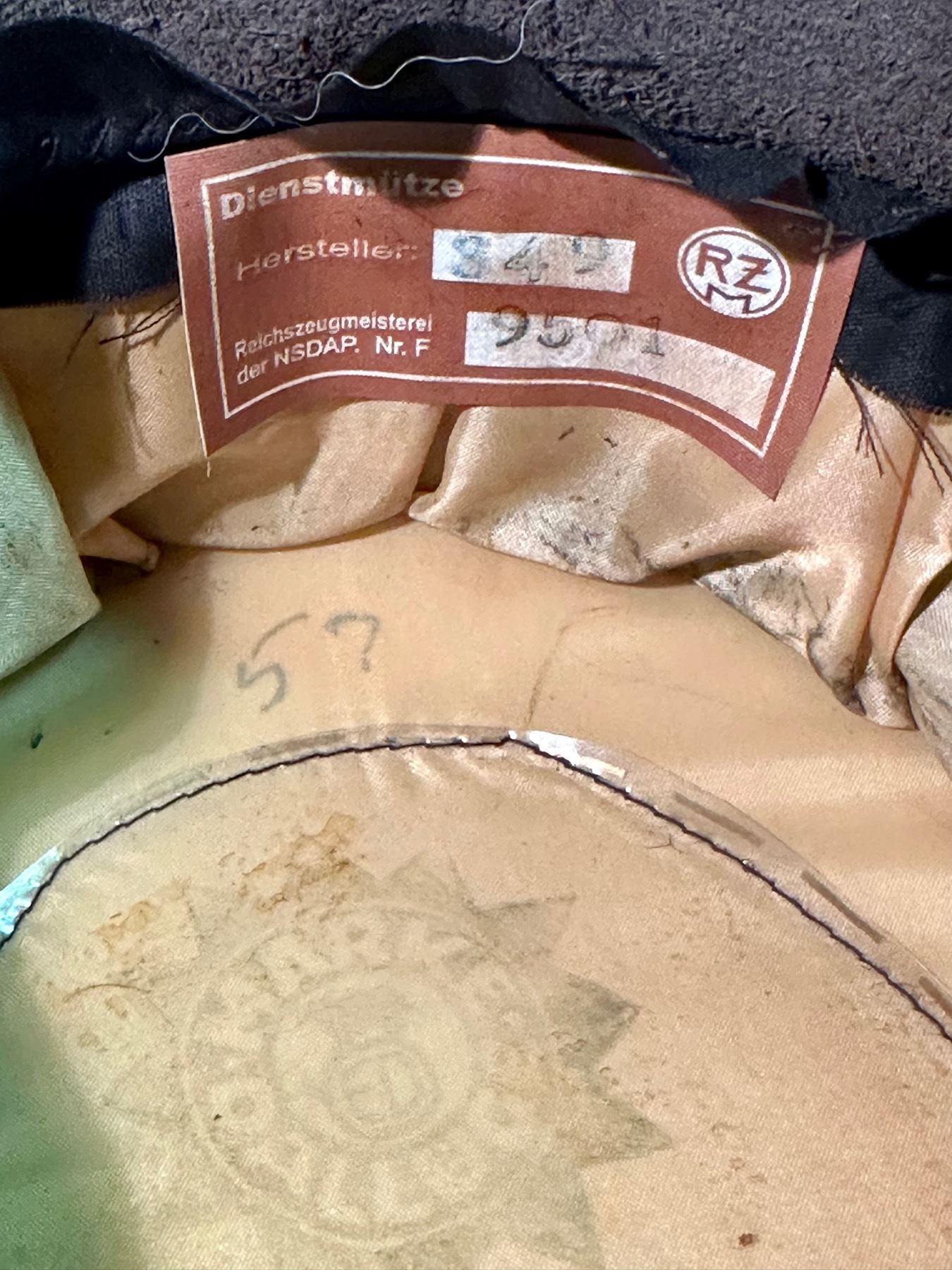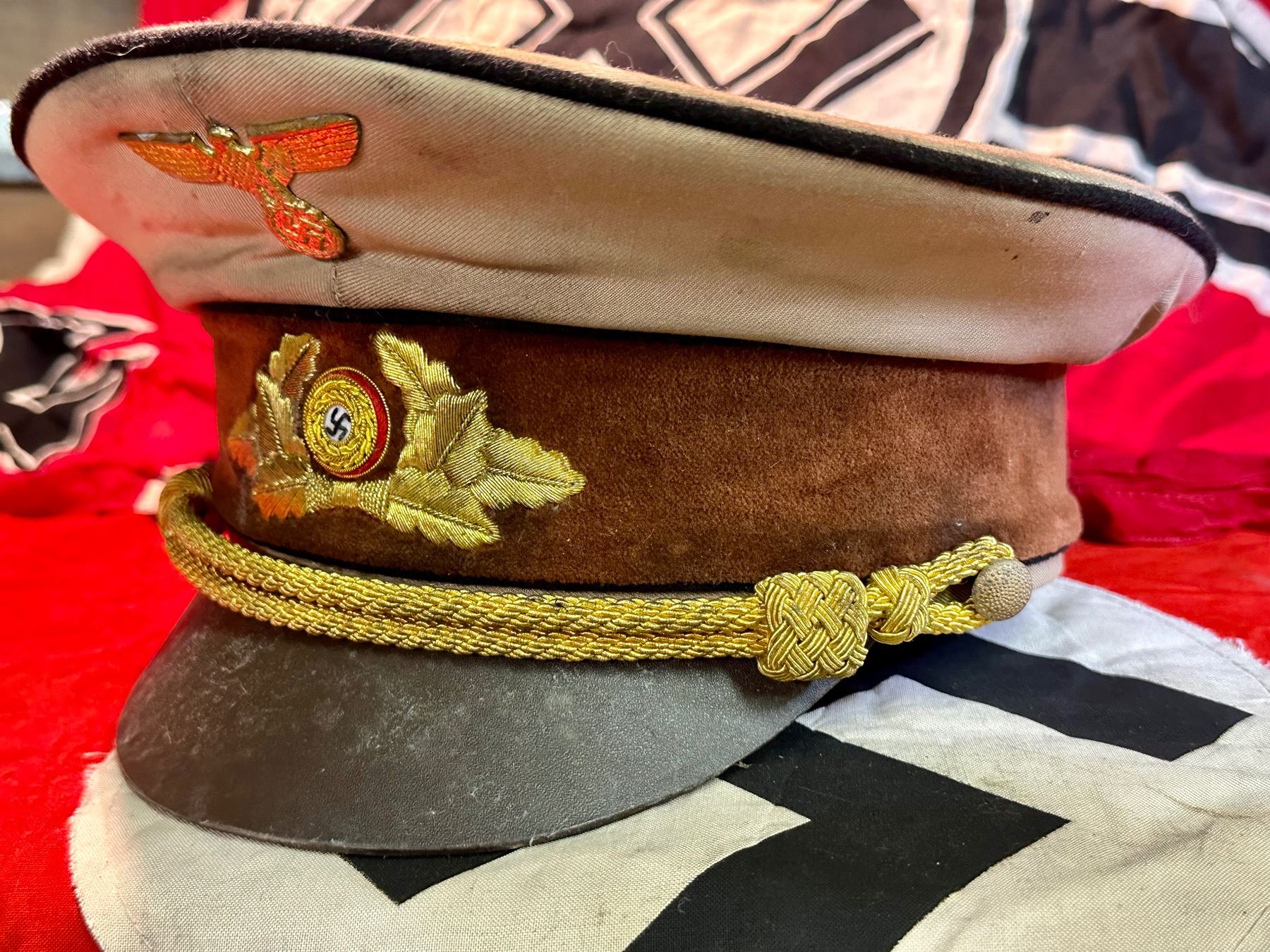 WW2 GERMAN NSDAP POLITICAL LEADER VISOR CAP WITH RZM PAPER TAG AND MAKER MARKS. A RARE FIND. IT IS IN MINT OVERALL SHAPE AND CONDITION WITH A BEAUTIFUL OVERALL PATINA. SHOWS GOOD WEAR AND USE. PLEASE VIEW ALL DETAILED PICTURES. A GREAT FIND AND AN EXCELLENT ADDITION TO YOUR COLLECTION.