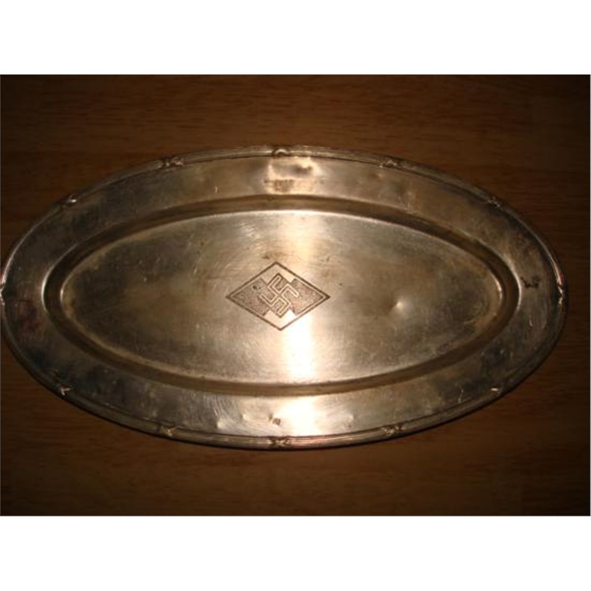 WW2 GERMAN OFFICER PLATE/TRAY HITLER JUGEND MARKED WMF, TRAY IS SILVERPATED , DIMENSIONS LENGTH 9/5 INCHES,