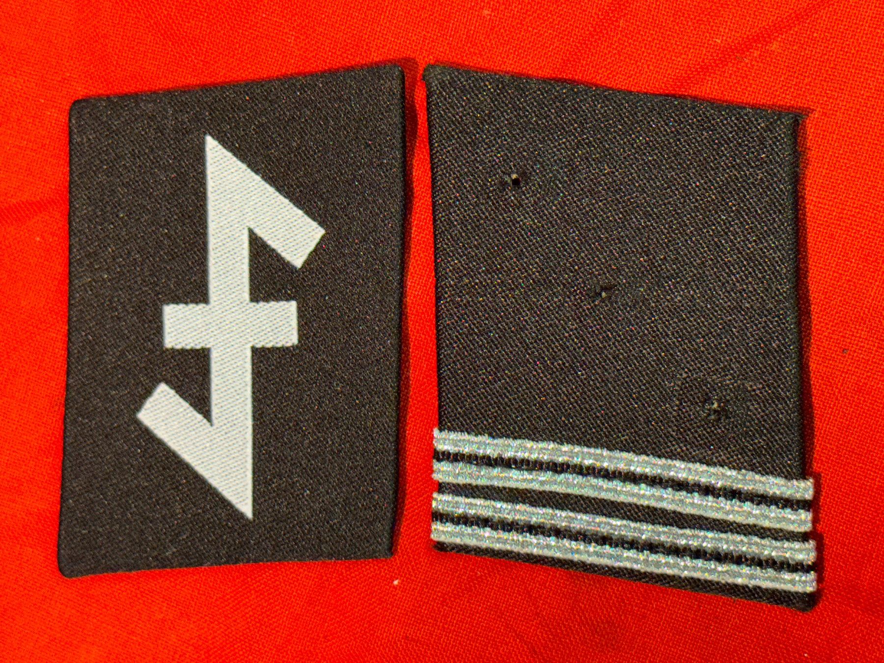 WW2 GERMAN PAIR OF SS OFFICER TUNIC COLLAR TABS. IT IS IN MINT OVERALL SHAPE AND CONDITION WITH A BEAUTIFUL OVERALL PATINA. SHOWS GOOD WEAR AND USE. PLEASE VIEW ALL DETAILED PICTURES. A GREAT FIND AND AN EXCELLENT ADDITION TO YOUR COLLECTION.