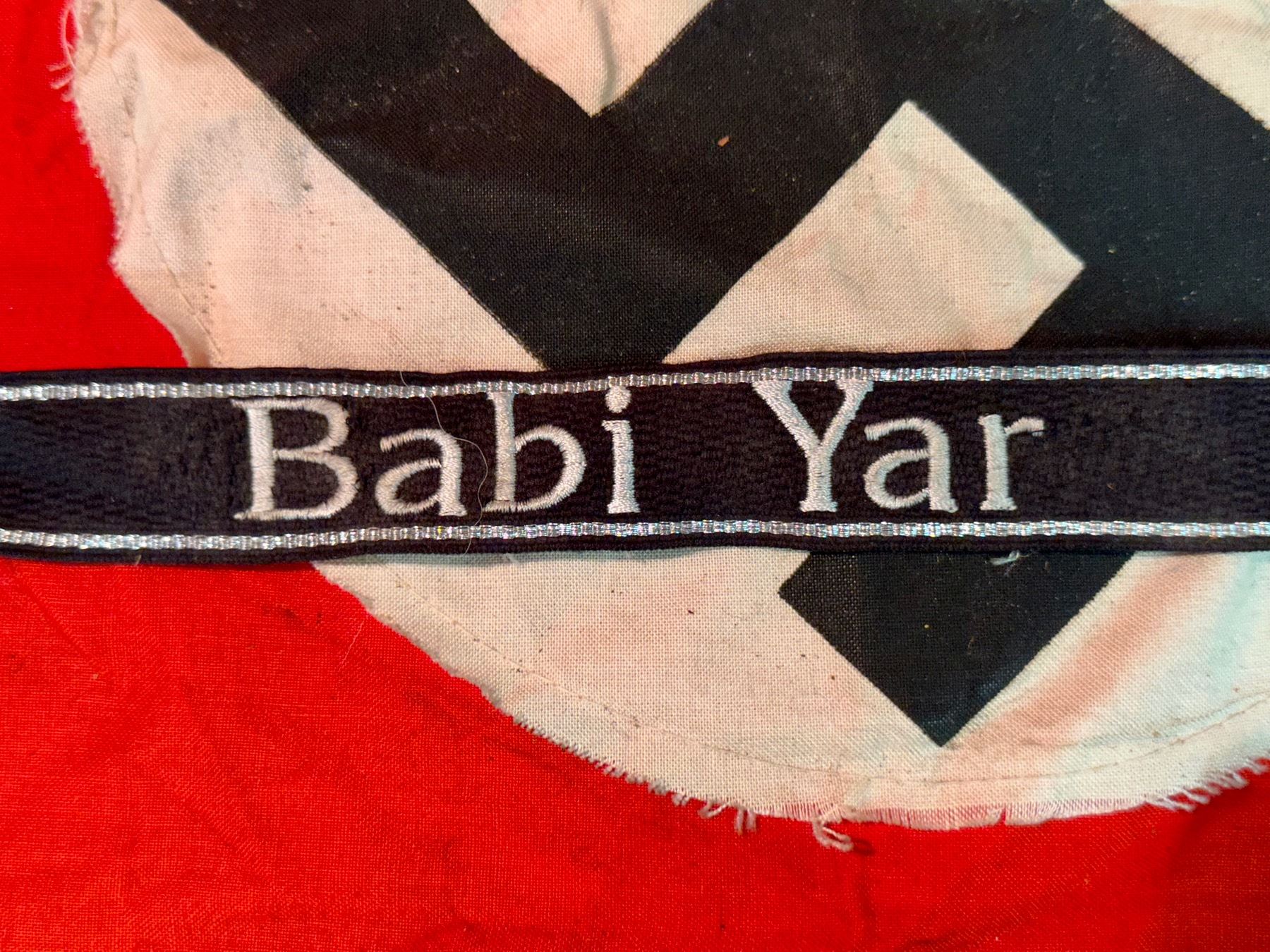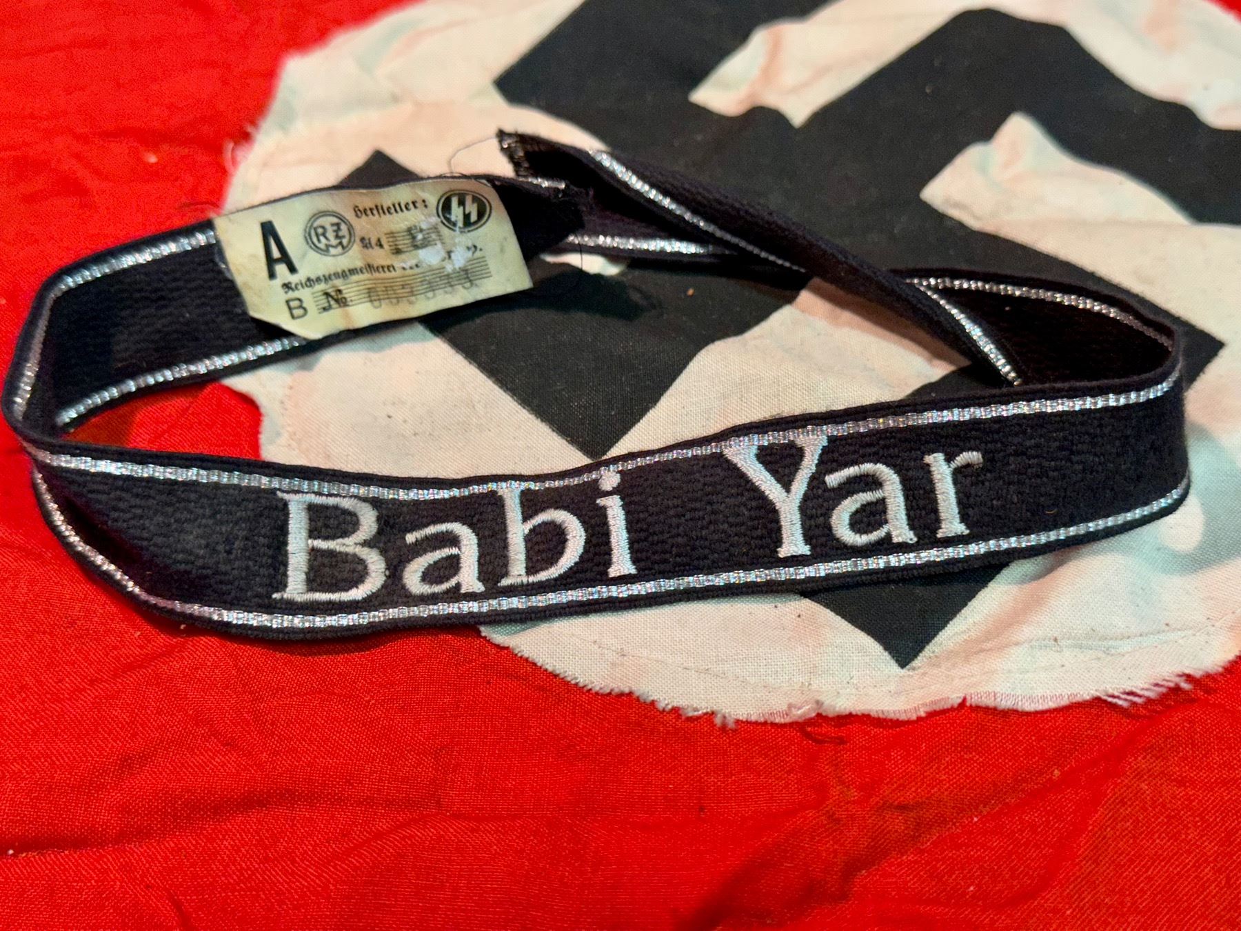 WW2 GERMAN WAFFEN SS DIV. BABI YAR CUFF TITLE WITH RZM PAPER TAG. A RARE FIND. IT IS IN MINT OVERALL SHAPE AND CONDITION WITH A BEAUTIFUL OVERALL PATINA. SHOWS GOOD WEAR AND USE. PLEASE VIEW ALL DETAILED PICTURES. A GREAT FIND AND AN EXCELLENT ADDITION TO YOUR COLLECTION.
