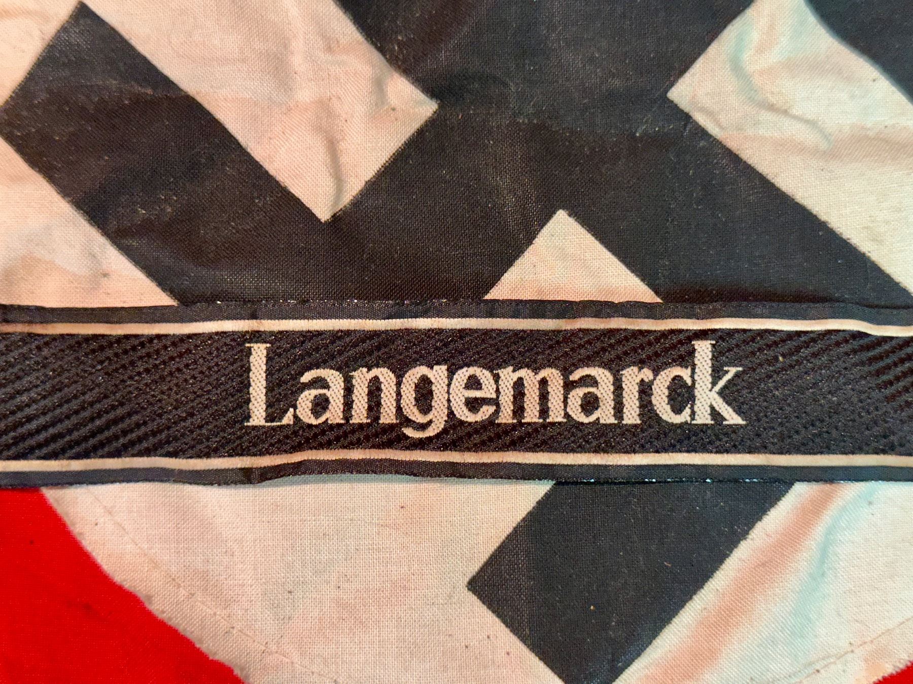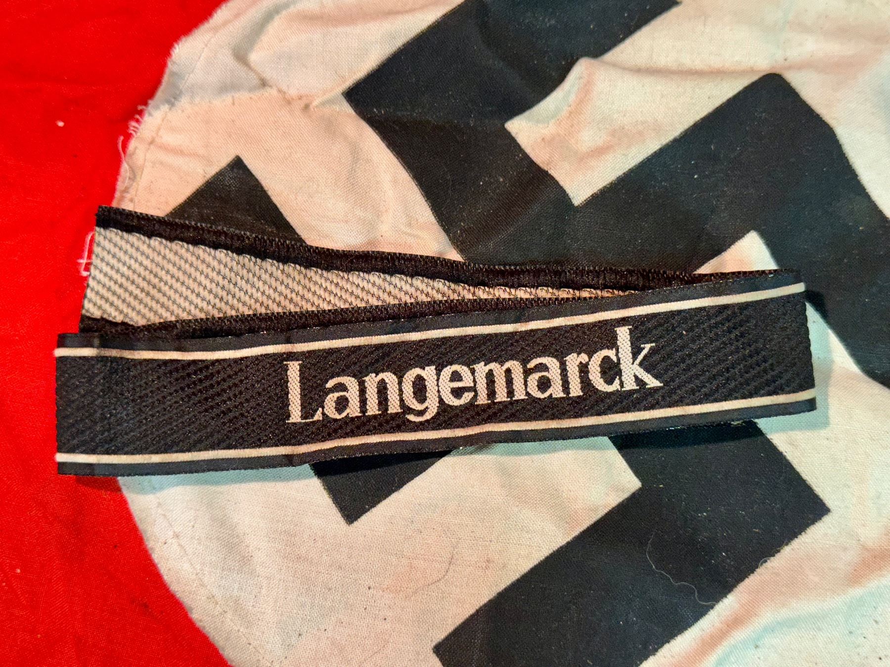 WW2 GERMAN WAFFEN SS LANGEMARCK CUFF TITLE. A RARE FIND. IT IS IN MINT OVERALL SHAPE AND CONDITION WITH A BEAUTIFUL OVERALL PATINA. SHOWS GOOD WEAR AND USE. PLEASE VIEW ALL DETAILED PICTURES. A GREAT FIND AND AN EXCELLENT ADDITION TO YOUR COLLECTION.