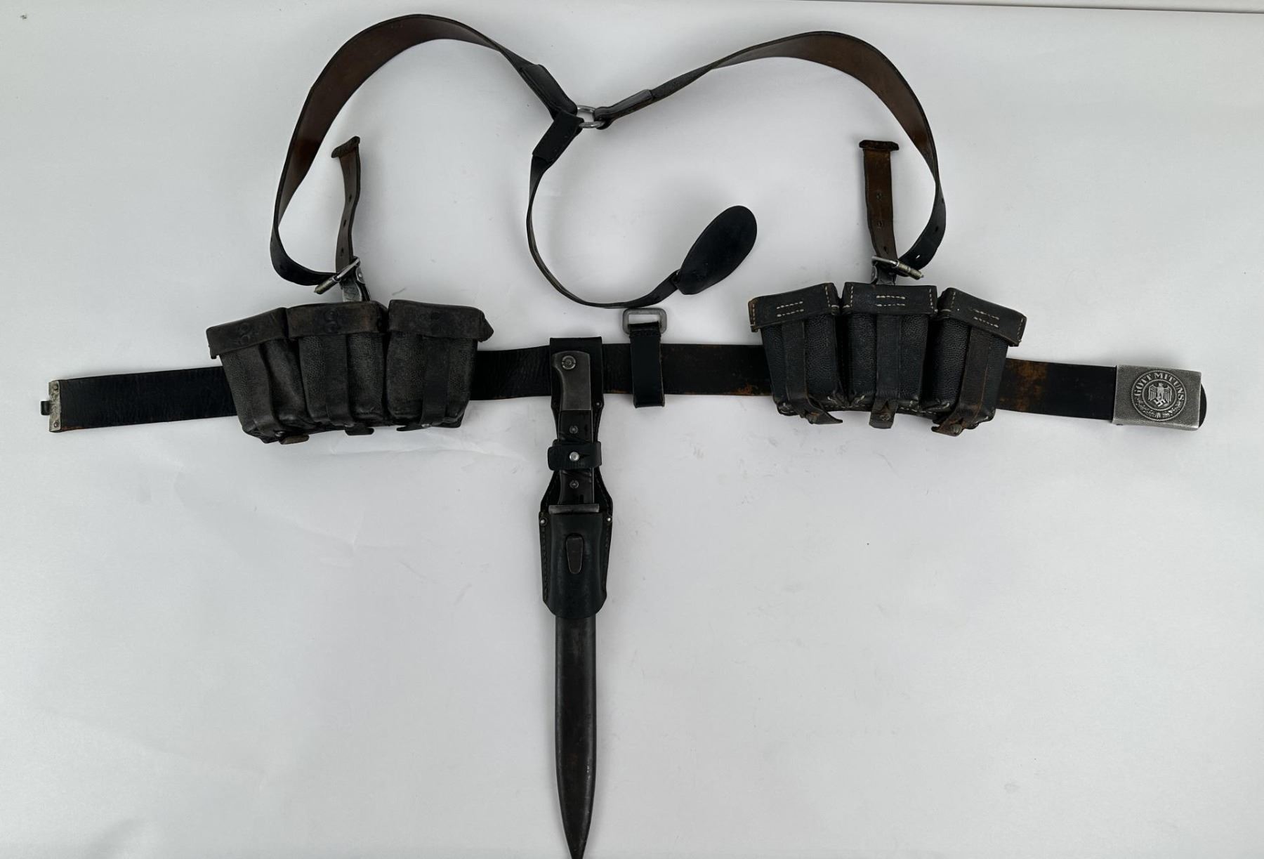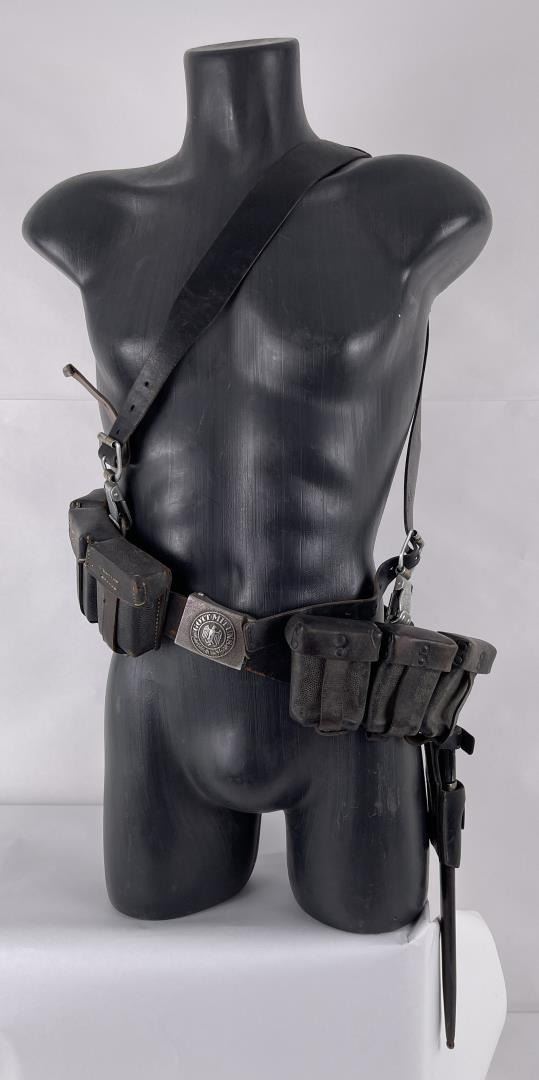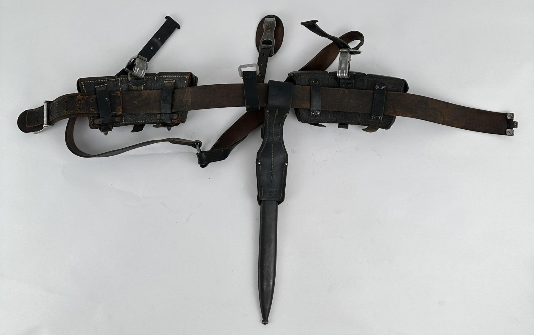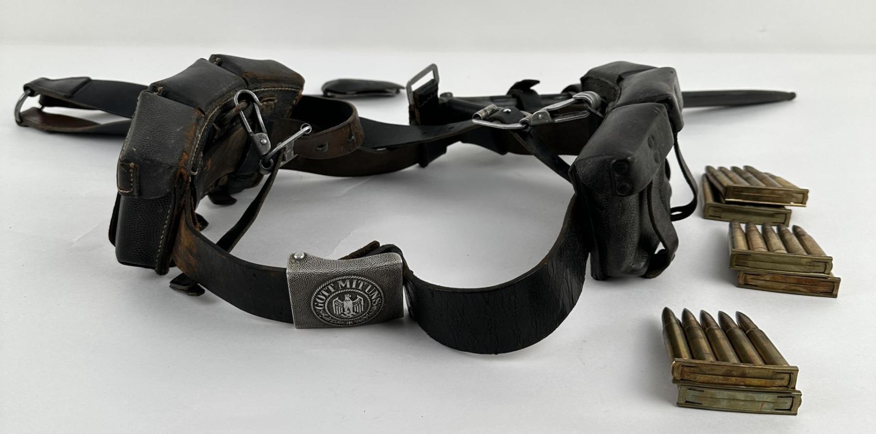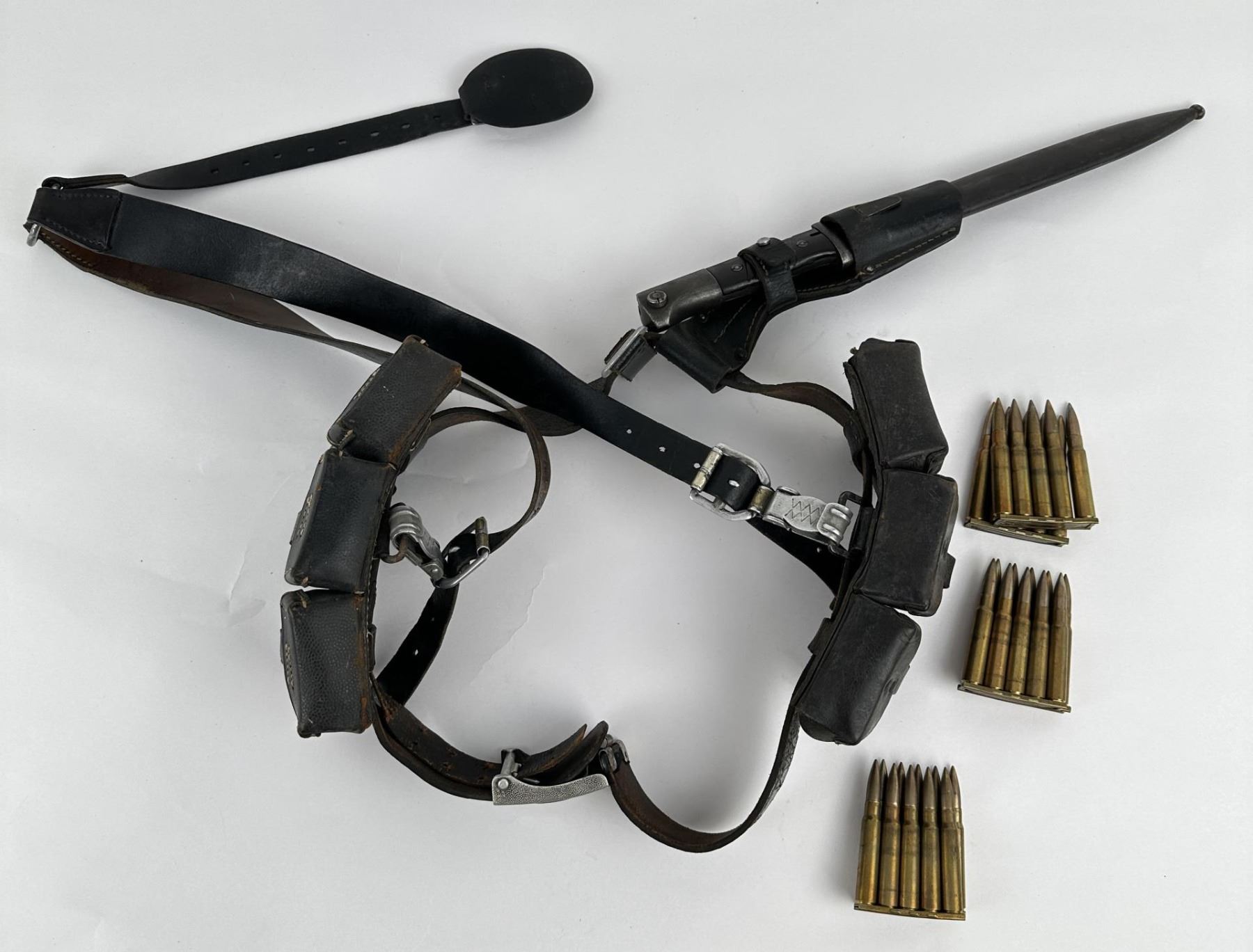 Belt, Mauser Cartridge Boxes, Ammo, and Bayonet. Nice original setup. California and New York Shipments Requires this lot to be sent to an FFL Dealer.