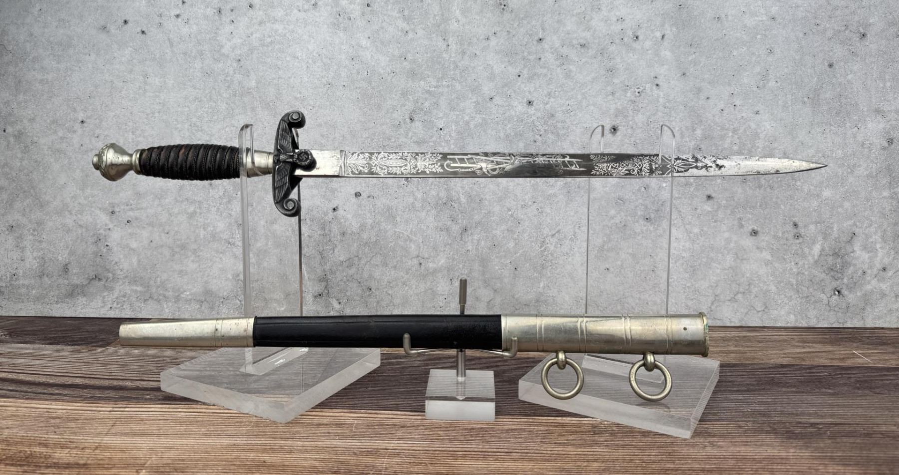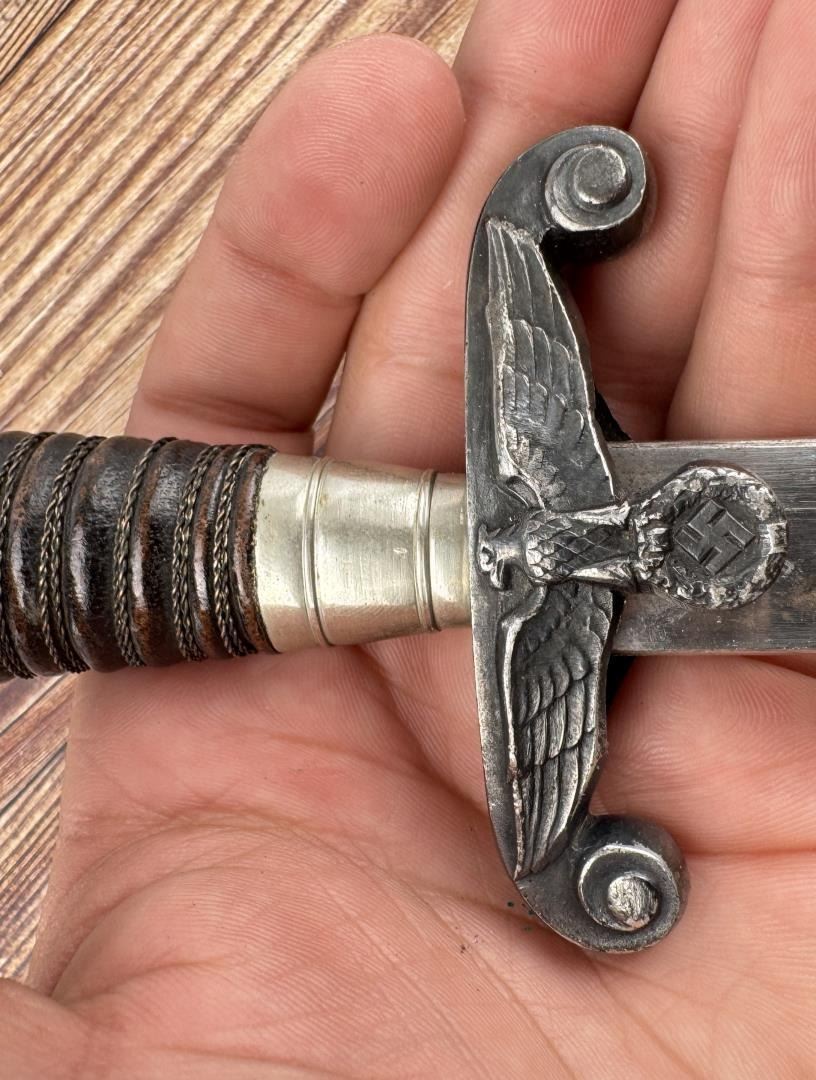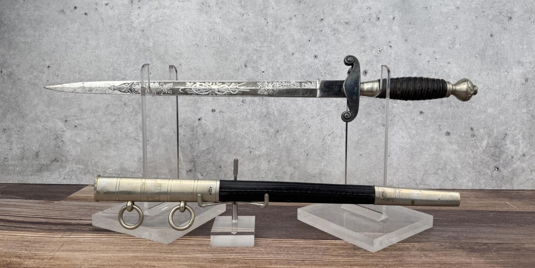 WW1 fire service dagger fitted post WW2 with Third Reich Eagle guard. 18 1/8" long.
