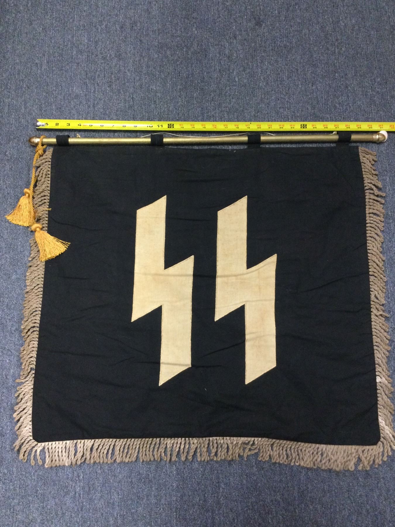 You are bidding on a highly unusual and rare flag, this flag on one side displays the Nazi Youth Flag, then upon graduation the SS Flag is reversed and hung from the podium, a fantastic addition to your collection
