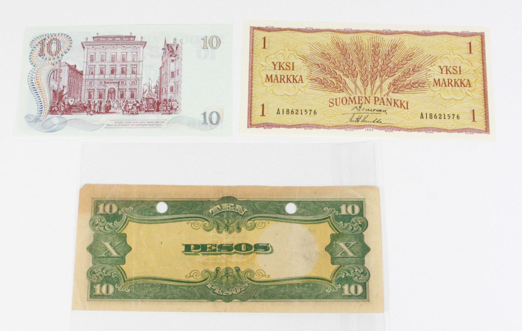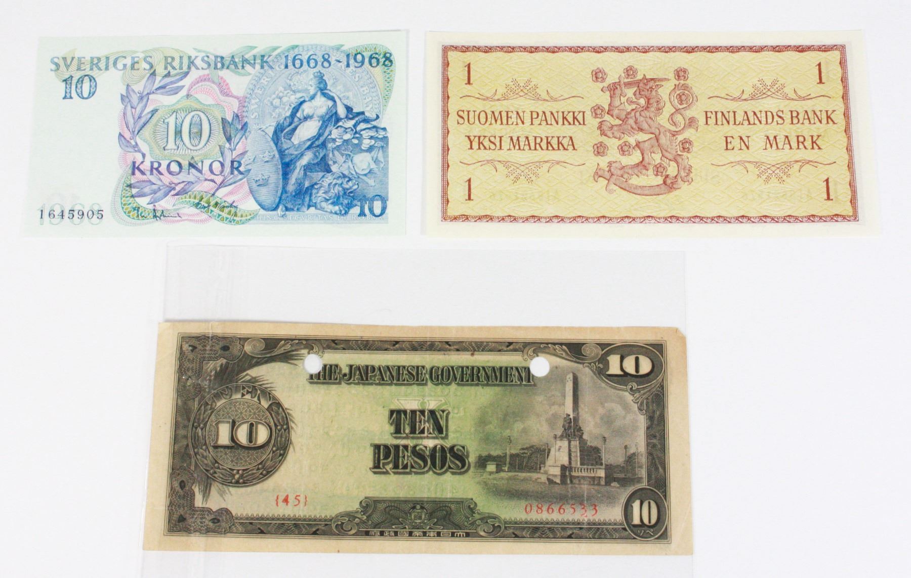 SOLD WITH 1968 SWEDEN 10 KRONOR BANKNOTE 30TH ANNIVERSARY OF SVERIGES RIKSBANK AND 1963 FINLAND 1 MARKKA PAPER MONEY BANKNOTE