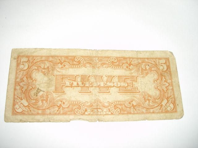 WW2 JAPANESE GOVERNMENT 5 PESOS CURRENCY NOTE *NICE NOTE*!! ***Coin, Currency & All Items Listed in this auction - Grades, Conditions and Values are not Safe Deposit Coins LLC Responsibilty. Grades, Condition and Values are determined by Consigner(s) & Buyers ONLY***