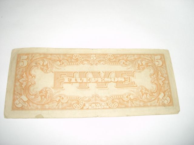 WW2 JAPANESE GOVERNMENT 5 PESOS CURRENCY NOTE *NICE NOTE*!! ***Coin, Currency & All Items Listed in this auction - Grades, Conditions and Values are not Safe Deposit Coins LLC Responsibilty. Grades, Condition and Values are determined by Consigner(s) & Buyers ONLY***