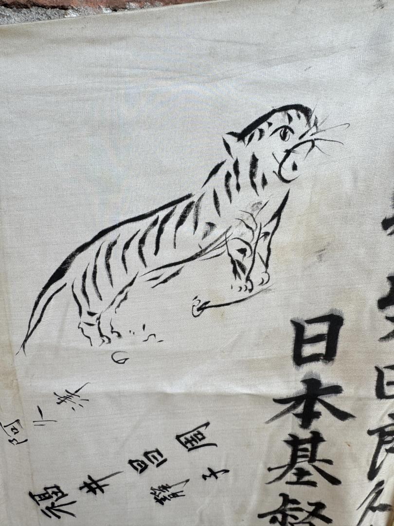 Interesting example with a tiger painted on it. 37 1/2" by 27".