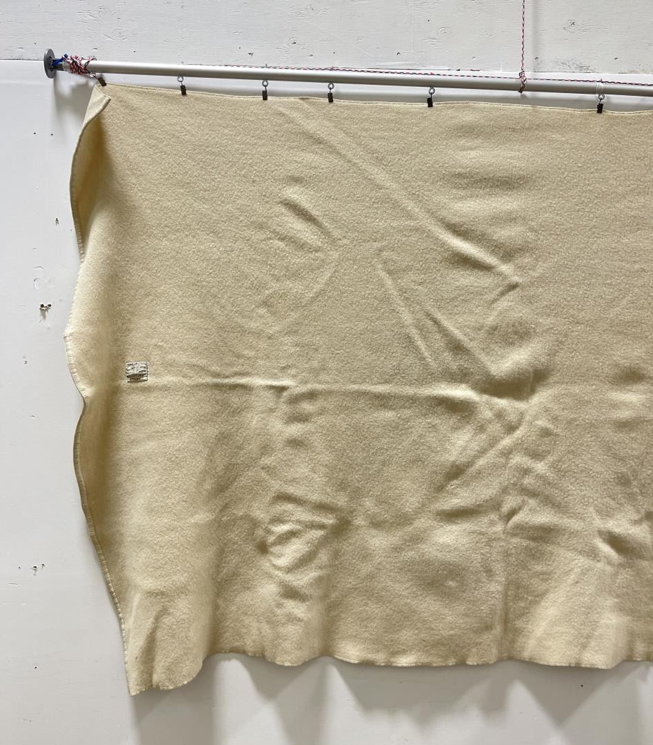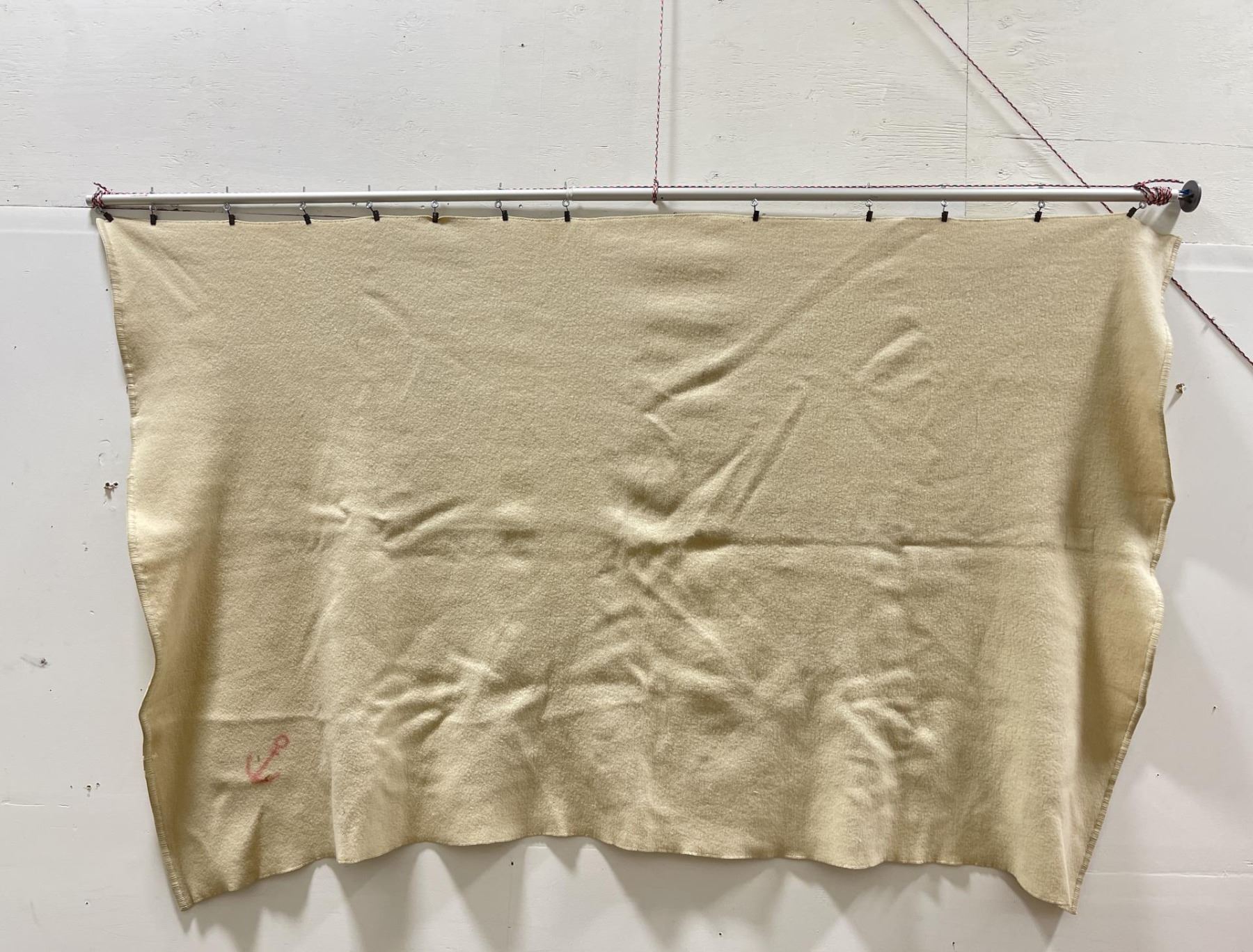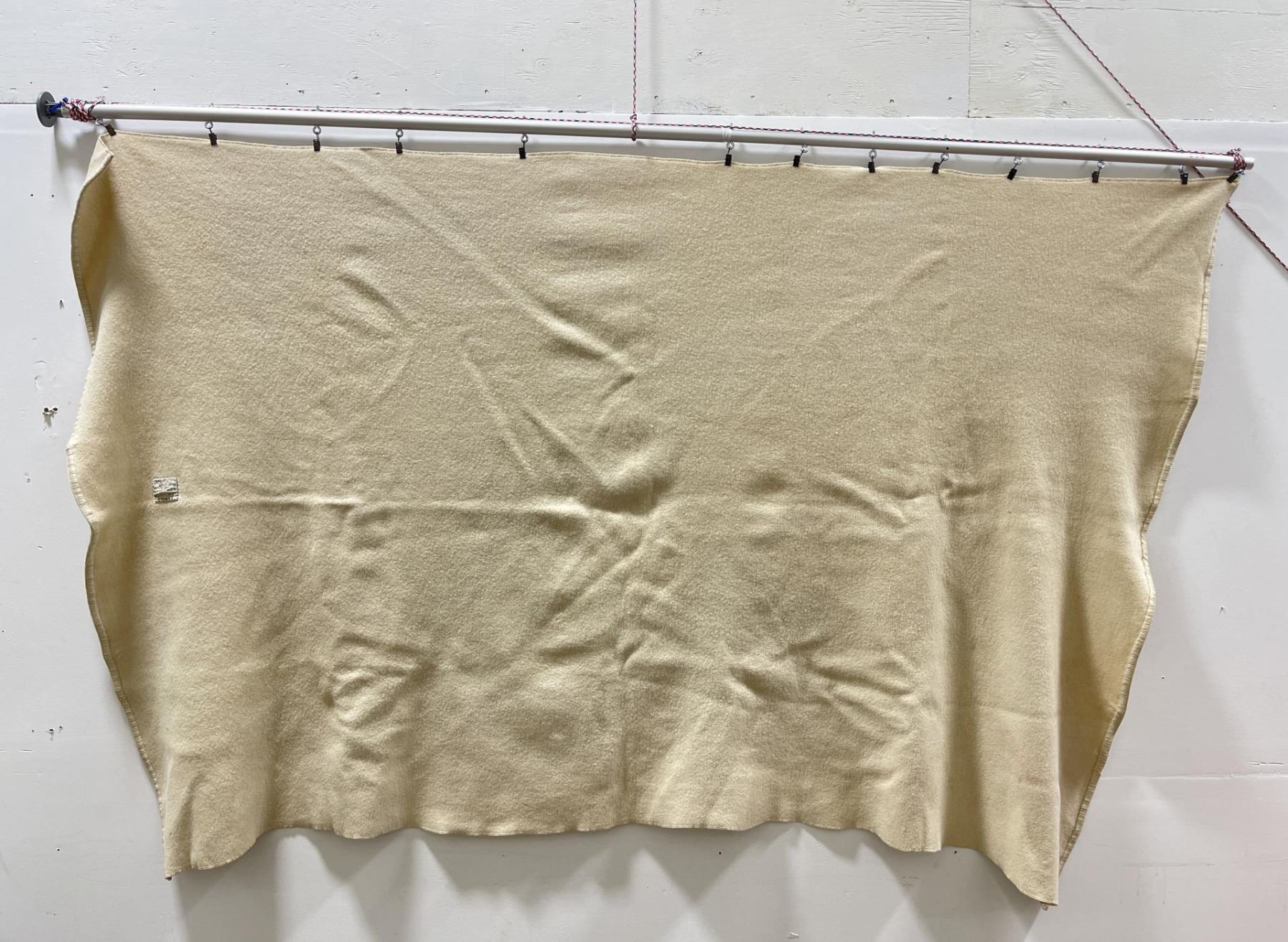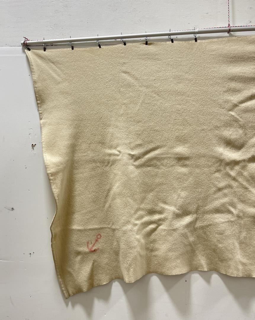 Very nice old blanket with tag. Has red anchor on the corner. 48 1/4" by 74".