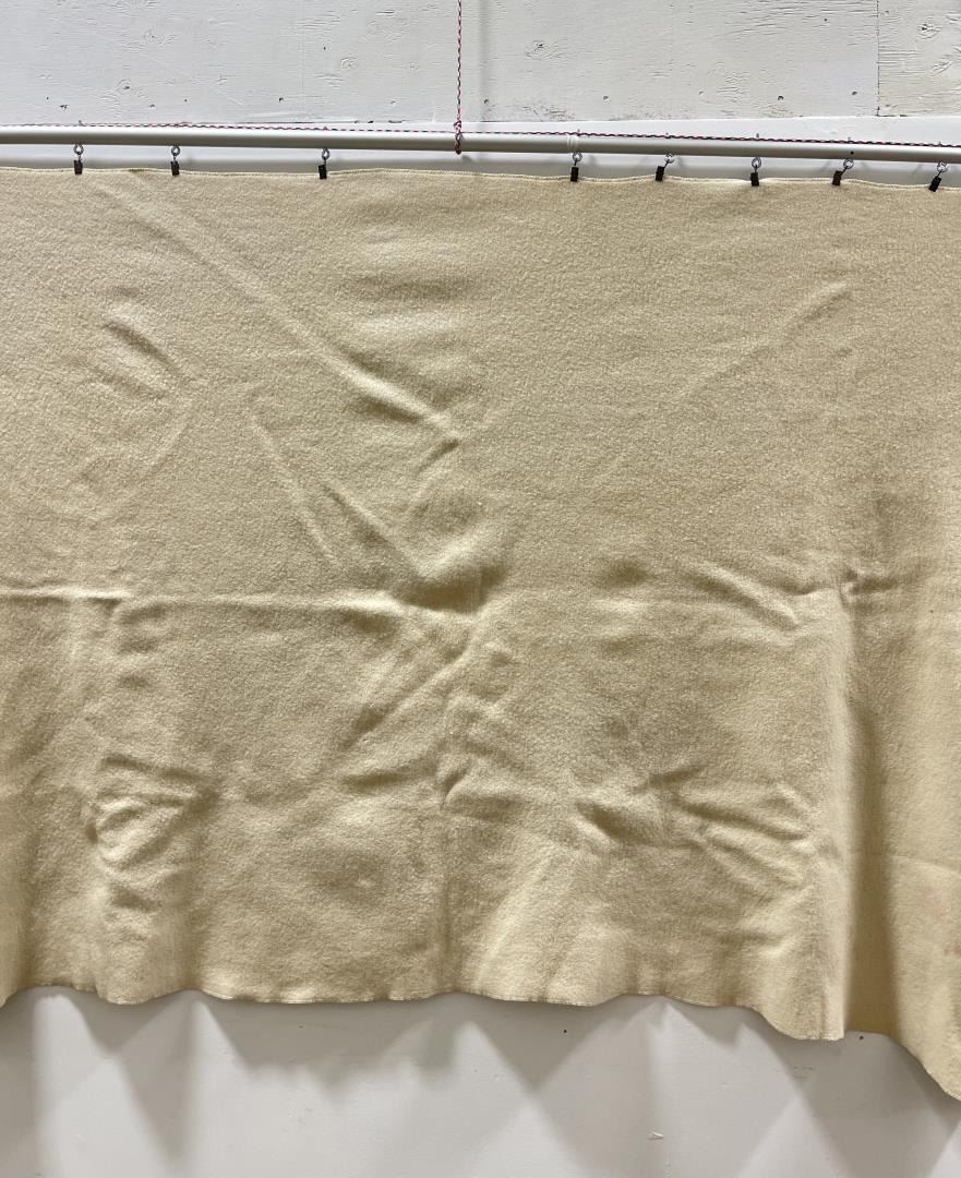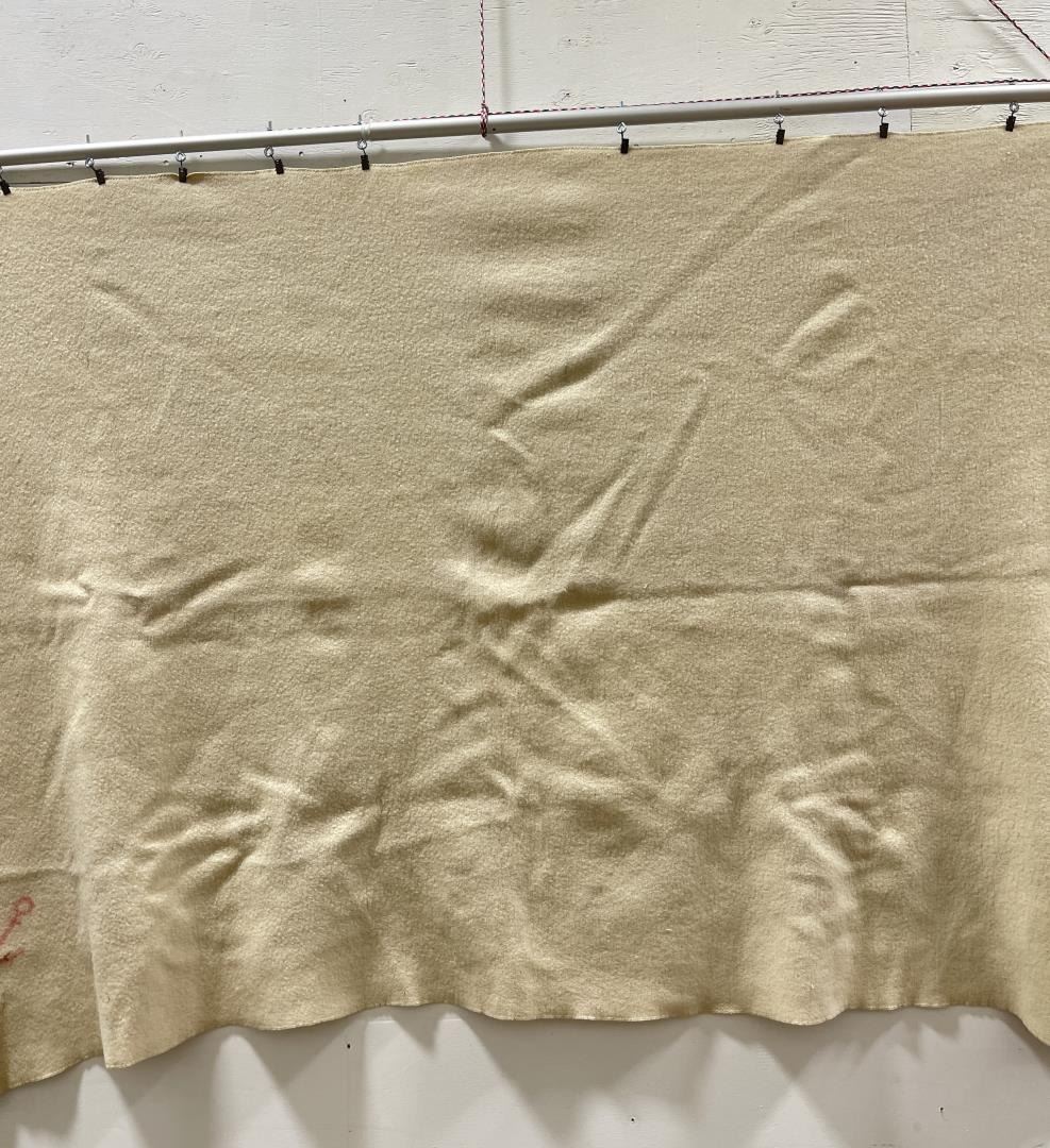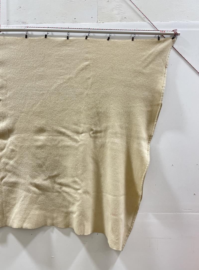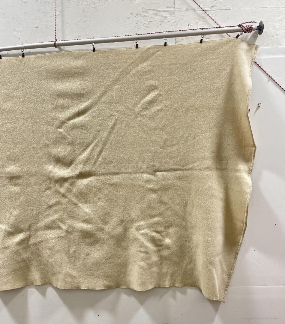 Very nice old blanket with tag. Has red anchor on the corner. 48 1/4" by 74".