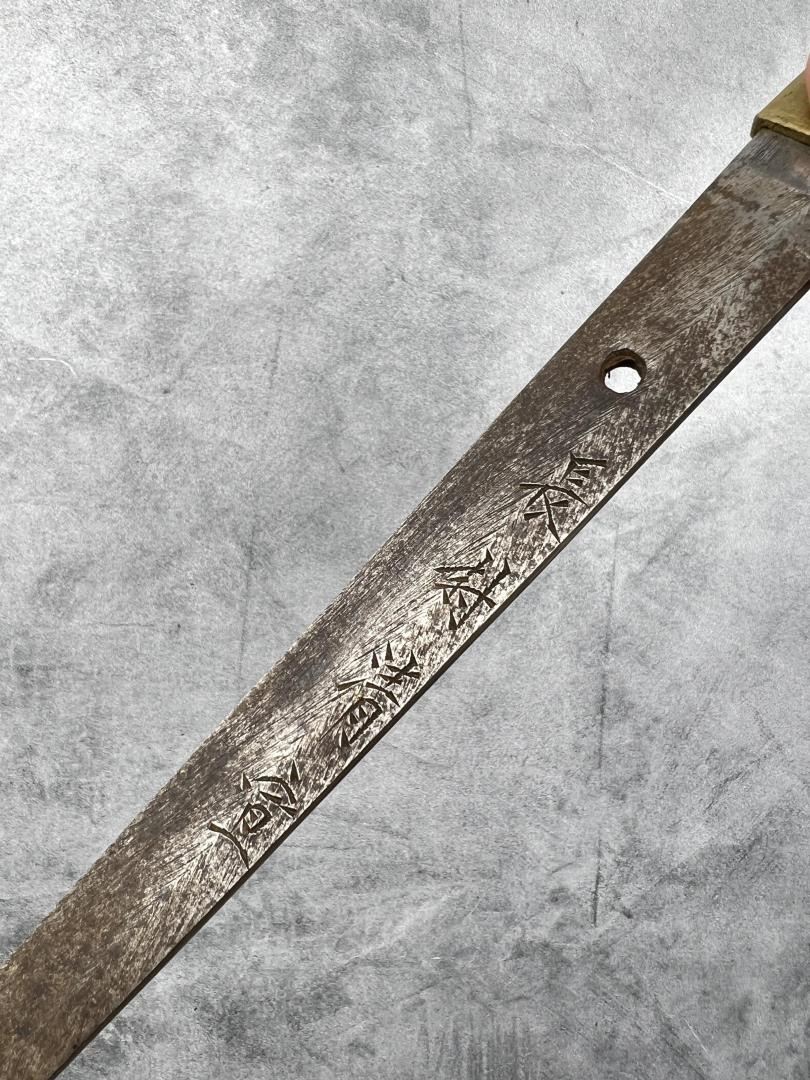 Nice blade in military mounts. Signed as shown. 36 1/2" long.