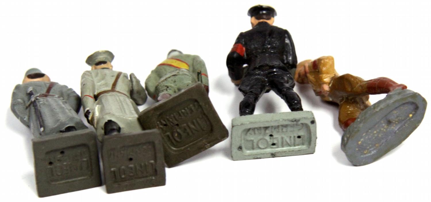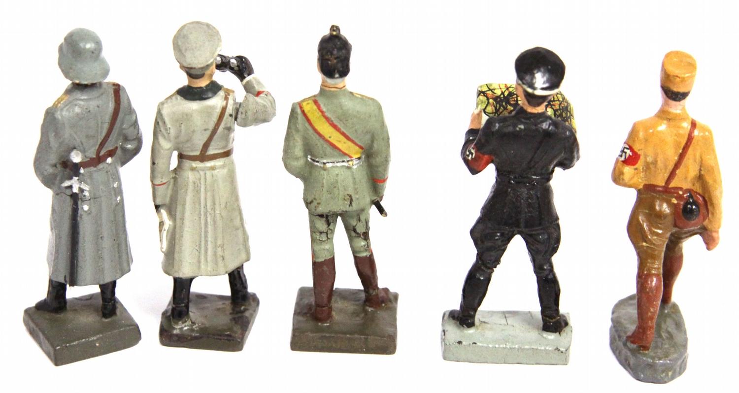 A lot of five 3 to 3.5 inch Hauser Lineol Nazi party leaders and generals including Von Romstadt, Rommel, Von Ribbentrop, SS leaders, and more. All very good condition but some minor cracking and expected paint loss to each expected.