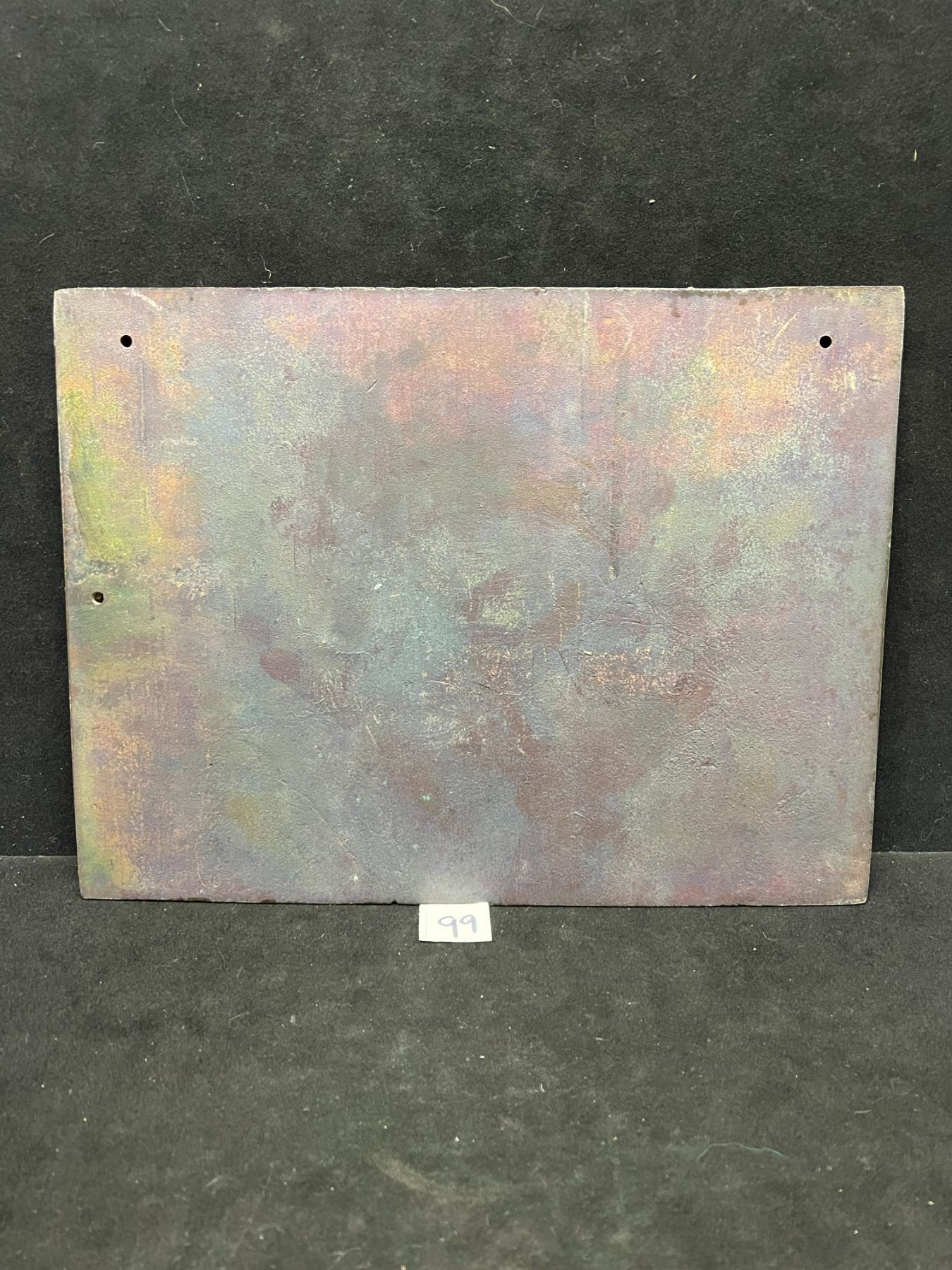 Nice heavy Piece. Not sure what type of metal. Approx: 9x12"