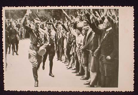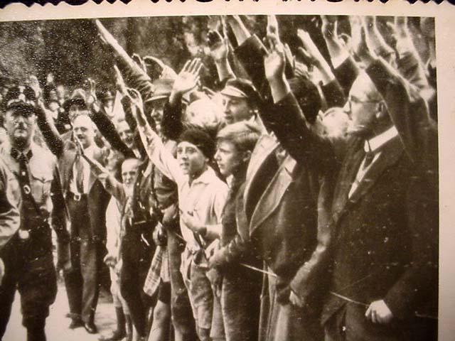 WW2 NAZI GERMAN ADOLF HITLER PHOTO - CROWD SALUTING HITLER - This photo was confiscated by the Russian Government after WW2. Russian stamp mark on back. The Russians only started releasing these photos from their War Archives recently.