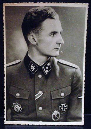WW2 NAZI GERMAN ARCHIVES PHOTO OF AN SS SOLDIER - This photo was confiscated from Germany by Russia at the end of WW2. Russia only recently started releasing these photos from their war archives. Russian markings on the back.