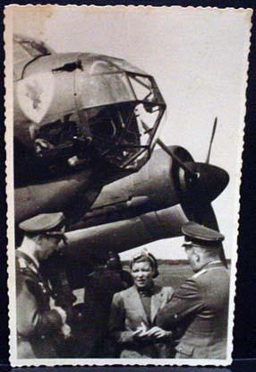 WW2 NAZI GERMAN ARCHIVES PHOTO OF OFFICERS AND A WOMAN NEXT TO A PLANE - This photo was confiscated from Germany by Russia at the end of WW2. Russia only recently started releasing these photos from their war archives. Russian markings on the back.