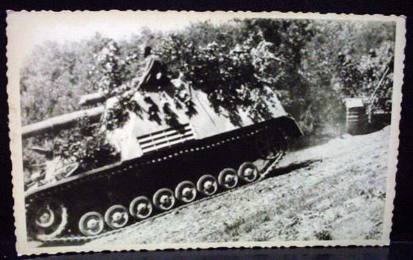 WW2 NAZI GERMAN ARCHIVES PHOTO OF SOLDIER IN A CAMOFLAUGED TANK - This photo was confiscated from Germany by Russia at the end of WW2. Russia only recently started releasing these photos from their war archives. Russian markings on the back.