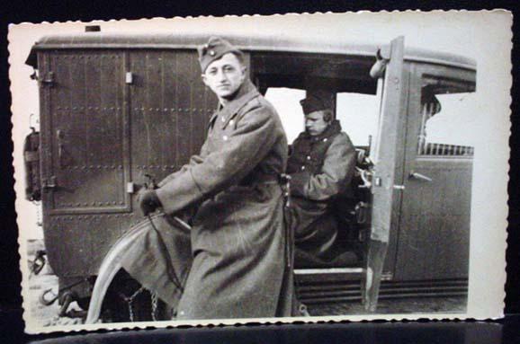 WW2 NAZI GERMAN ARCHIVES PHOTO OF SOLDIERS IN A VEHICLE - 1 W/ HEADPHONES - This photo was confiscated from Germany by Russia at the end of WW2. Russia only recently started releasing these photos from their war archives. Russian markings on the back.