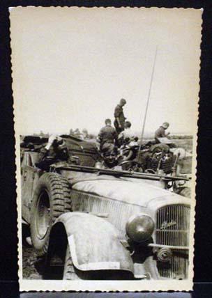 WW2 NAZI GERMAN ARCHIVES PHOTO OF SOLDIERS IN CAR - This photo was confiscated from Germany by Russia at the end of WW2. Russia only recently started releasing these photos from their war archives. Russian markings on the back.