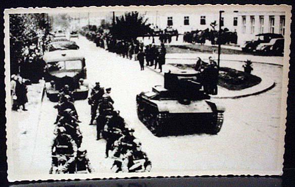 WW2 NAZI GERMAN ARCHIVES PHOTO OF SOLDIERS IN HELMETS, TANK, MORE - This photo was confiscated from Germany by Russia at the end of WW2. Russia only recently started releasing these photos from their war archives. Russian markings on the back.