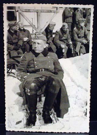 WW2 NAZI GERMAN ARCHIVES PHOTO OF SOLDIERS IN SNOW - 1 W/ A BEER - This photo was confiscated from Germany by Russia at the end of WW2. Russia only recently started releasing these photos from their war archives. Russian markings on the back.