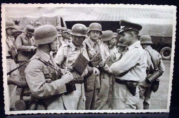 WW2 NAZI GERMAN ARCHIVES PHOTO OF SOLDIERS - MOST IN HELMETS - This photo was confiscated from Germany by Russia at the end of WW2. Russia only recently started releasing these photos from their war archives. Russian markings on the back.