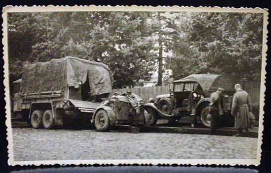 WW2 NAZI GERMAN ARCHIVES PHOTO OF SOLDIERS NEXT TO VEHICLES - This photo was confiscated from Germany by Russia at the end of WW2. Russia only recently started releasing these photos from their war archives. Russian markings on the back.