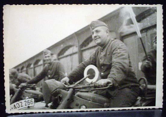 WW2 NAZI GERMAN ARCHIVES PHOTO OF SOLDIERS ON MOTORCYCLES - This photo was confiscated from Germany by Russia at the end of WW2. Russia only recently started releasing these photos from their war archives. Russian markings on the back.