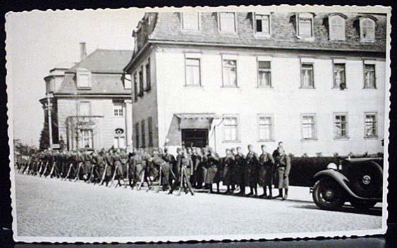 WW2 NAZI GERMAN ARCHIVES PHOTO OF SOLDIERS W/ RIFLES POSED IN FRONT OF THEM - This photo was confiscated from Germany by Russia at the end of WW2. Russia only recently started releasing these photos from their war archives. Russian markings on the back.