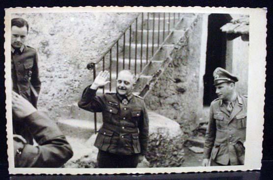 WW2 NAZI GERMAN ARCHIVES PHOTO SOLDIERS - 2 SALUTING - This photo was confiscated from Germany by Russia at the end of WW2. Russia only recently started releasing these photos from their war archives. Russian markings on the back.