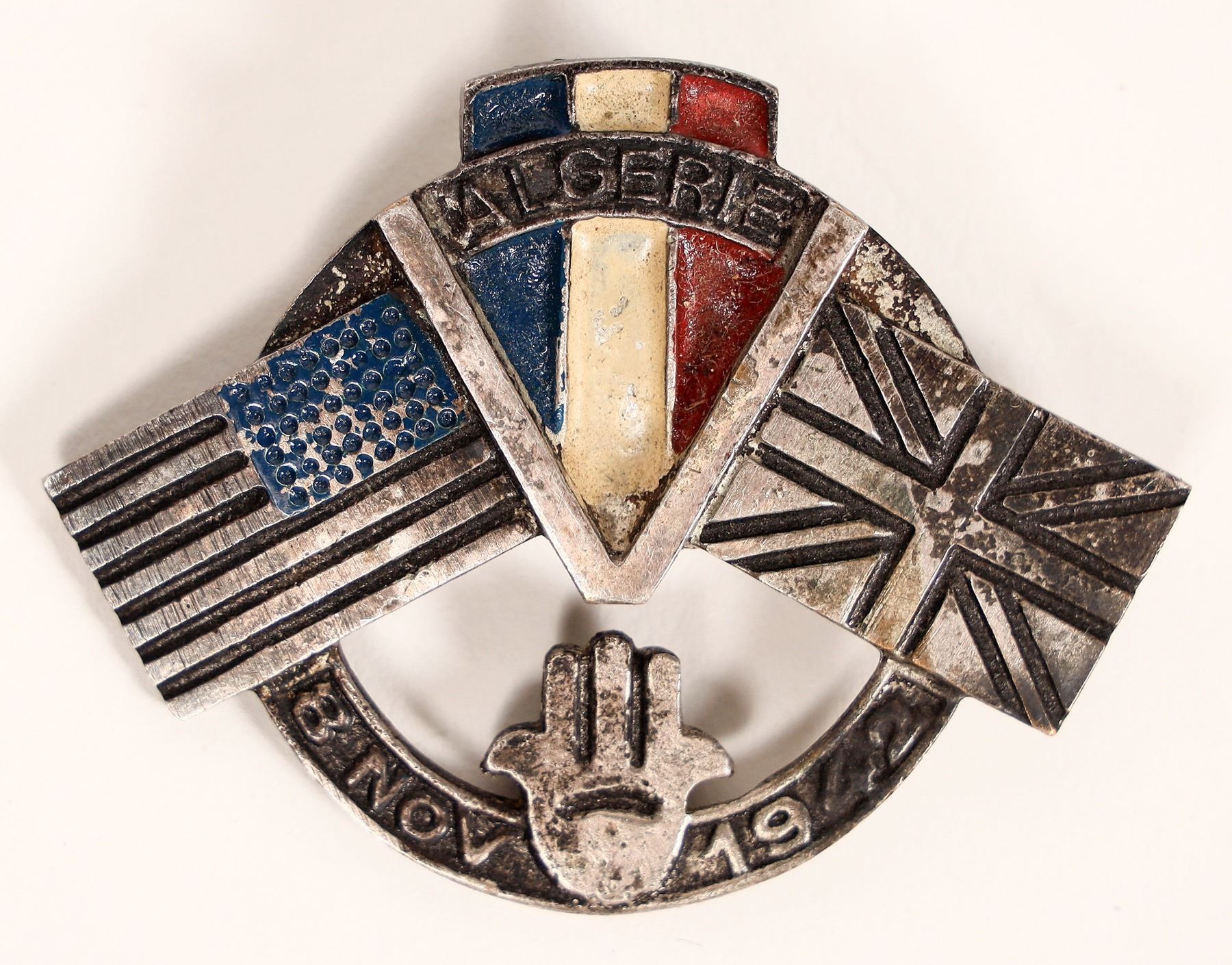 This badge is to commemorate the Invasion of North Africa by Allied forces. Dated 8 November, 1942 with the American and British flags. Unrestored condition. 2.5 in. wide. Please see photos for details.
