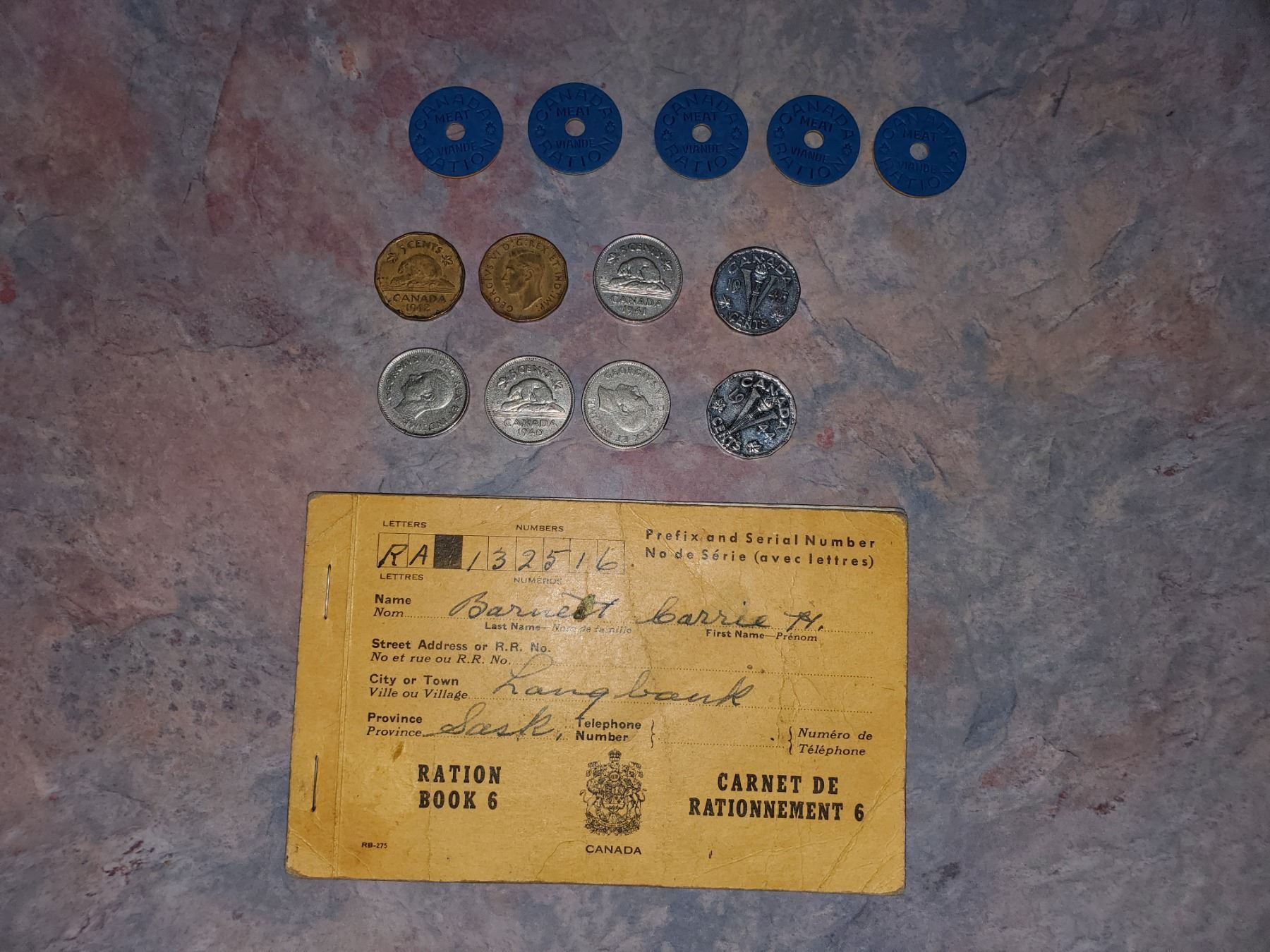 WW2 PERIOD NICKELS, RATION BOOK, & TOKENS