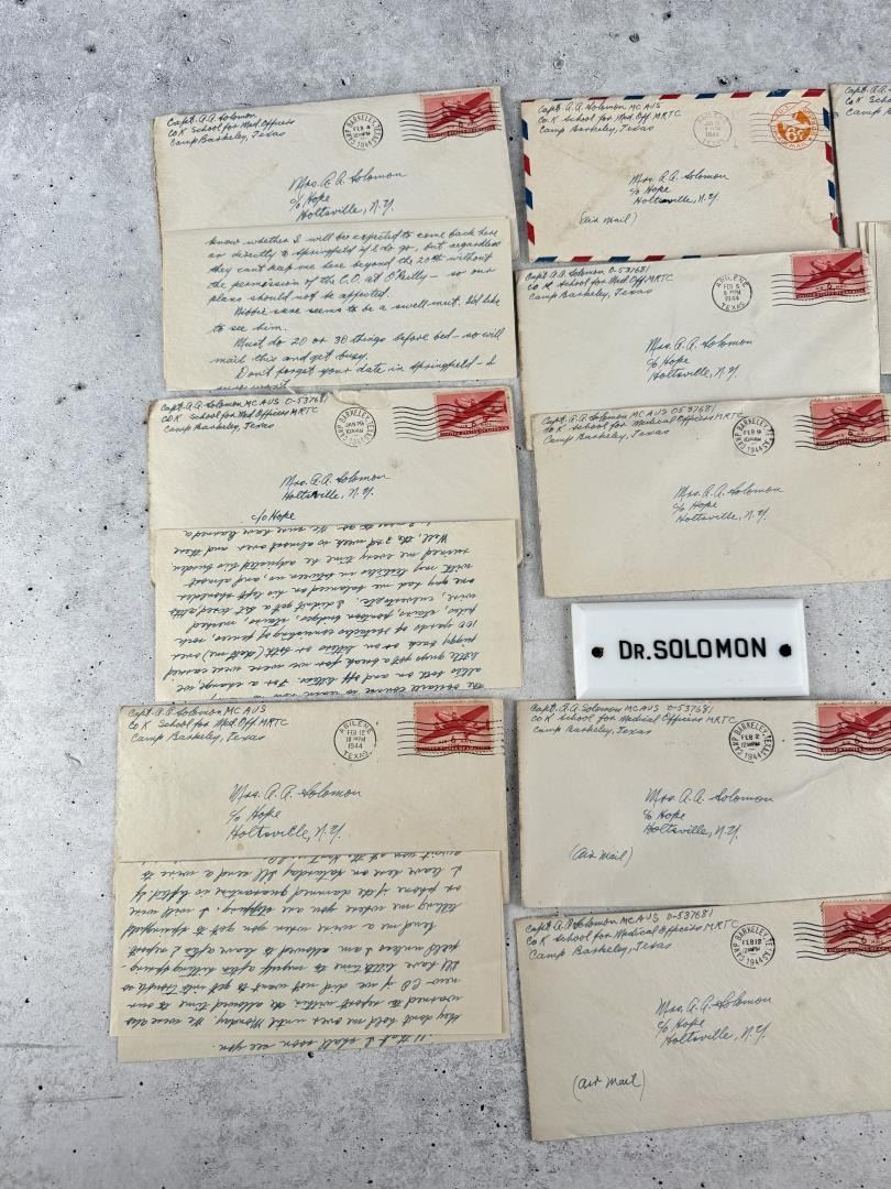 Collection of Letters from Captain Alfred Solomon to his wife in regards to conditions and practices at the US Medical Academy at Camp Barkeley Texas which was at that time a Prisoner of War internment camp for German Soldiers.