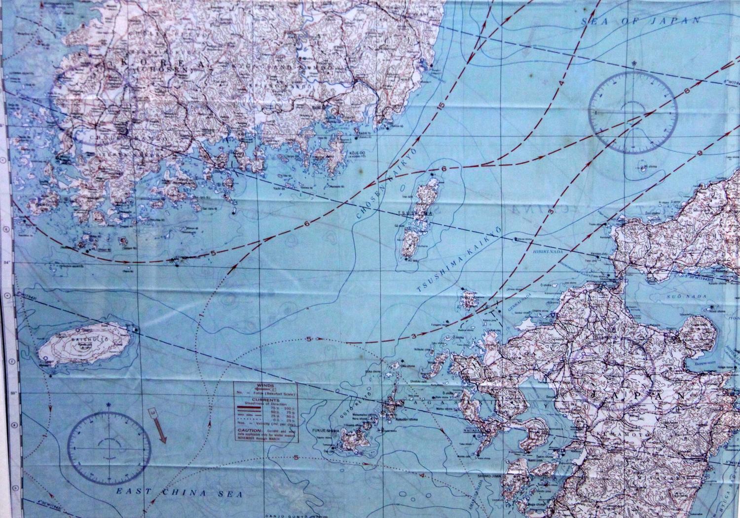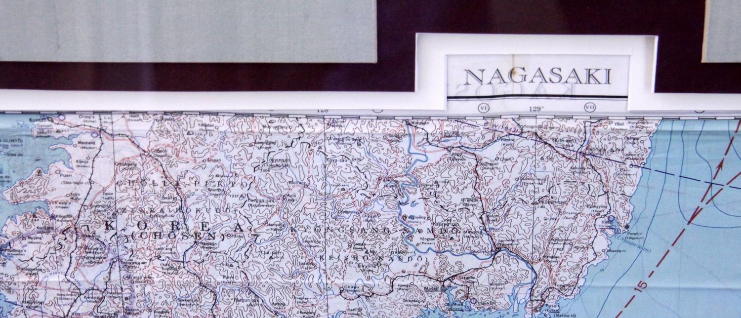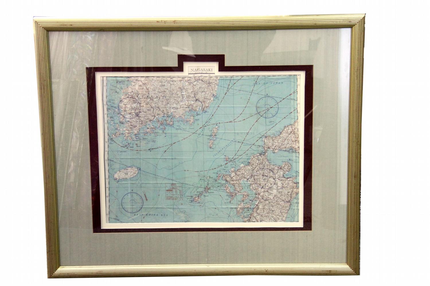 An original framed silk aviator map of Nagasaki Japan. Superior framing, 36x31inches.