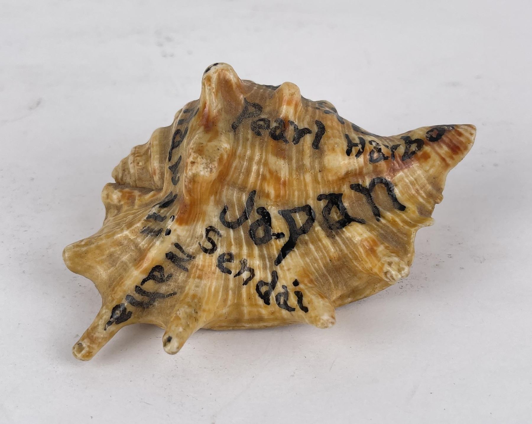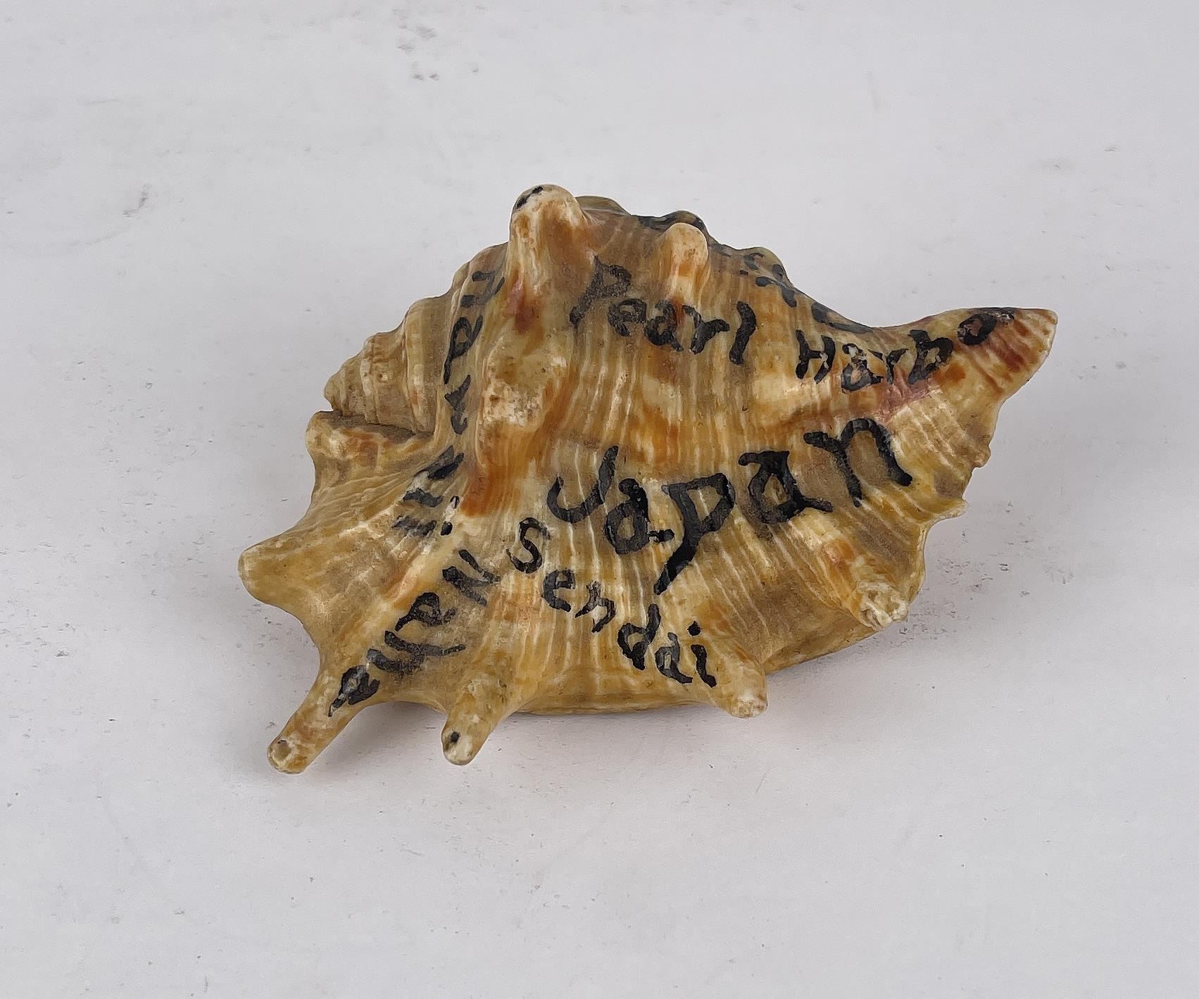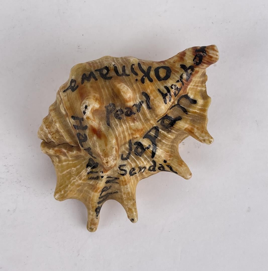 Neat shell. Appears to have been sent to his mother with the tour locations painted on it.
