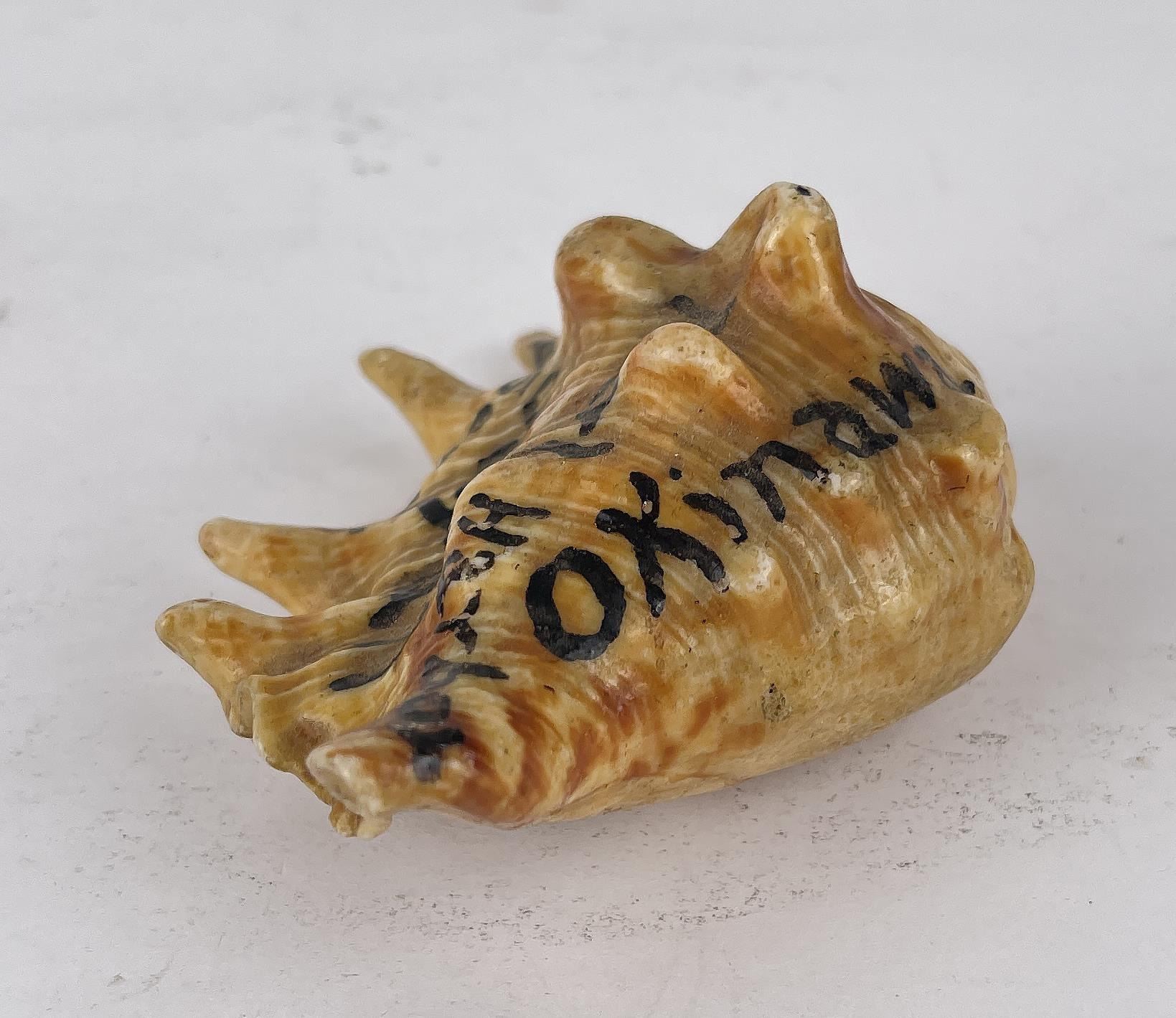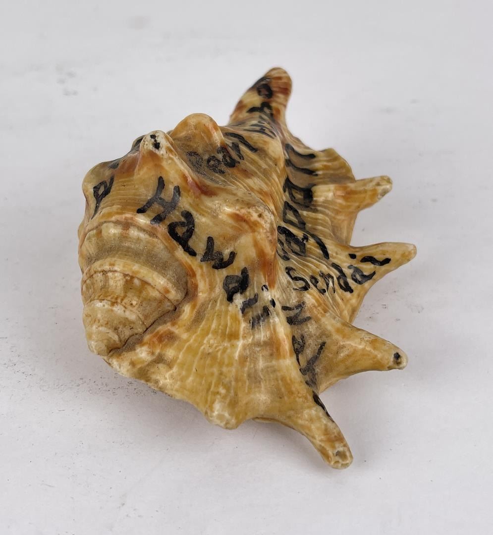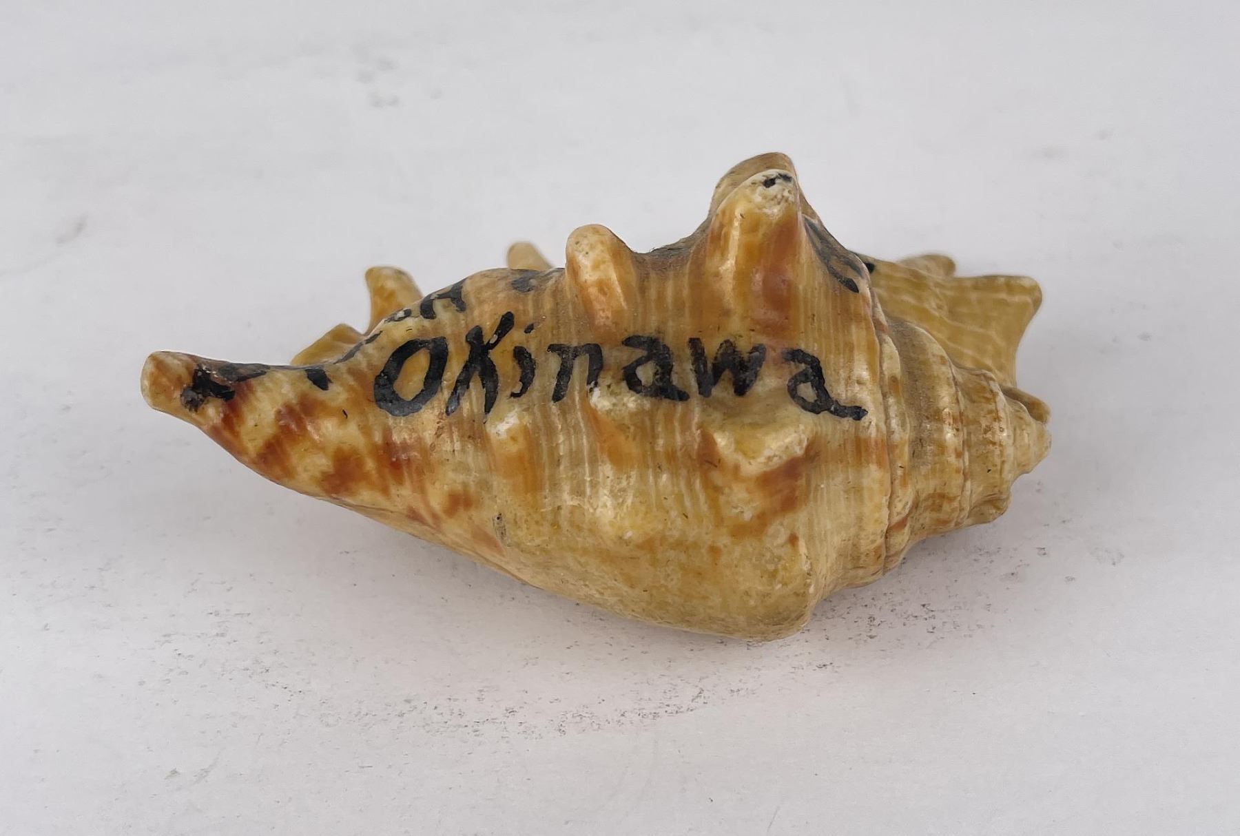 Neat shell. Appears to have been sent to his mother with the tour locations painted on it.