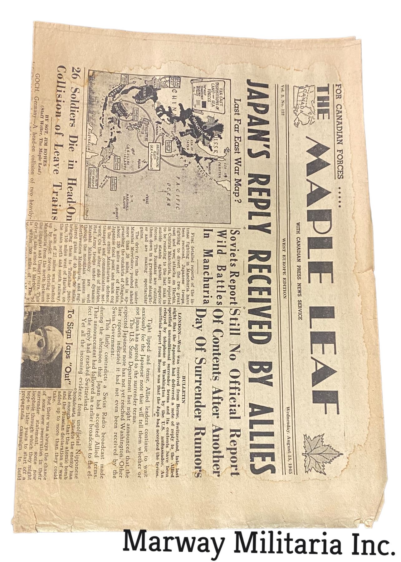 Includes Vol 4 No 28, Monday Oct 5 1945, Vol 3 No 134 Thursday Aug 20, 1945, Vol 3 No 132 Tuesday Aug 28 1945, Vol 3 No 122 Wed August 15 1945. All show use and wear, some with small tears as the paper is very thin.