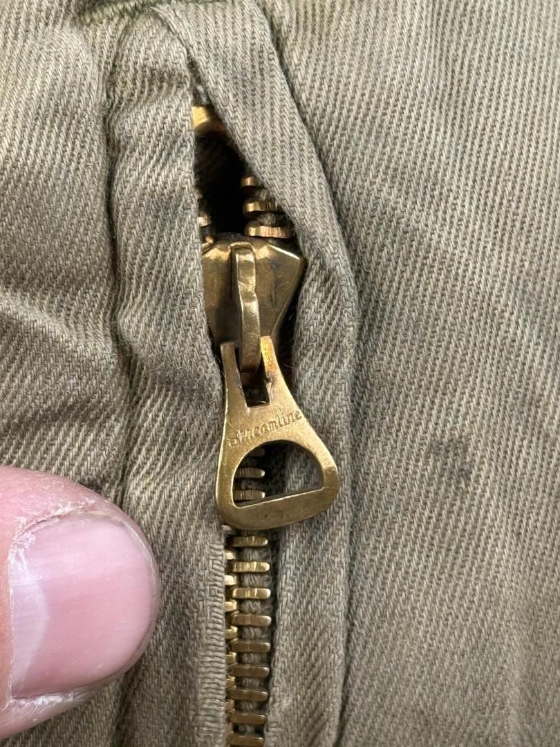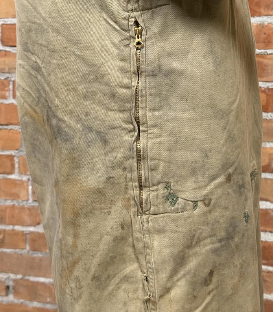 All zippers are functional. Waist is 21" across by 27" inseam.