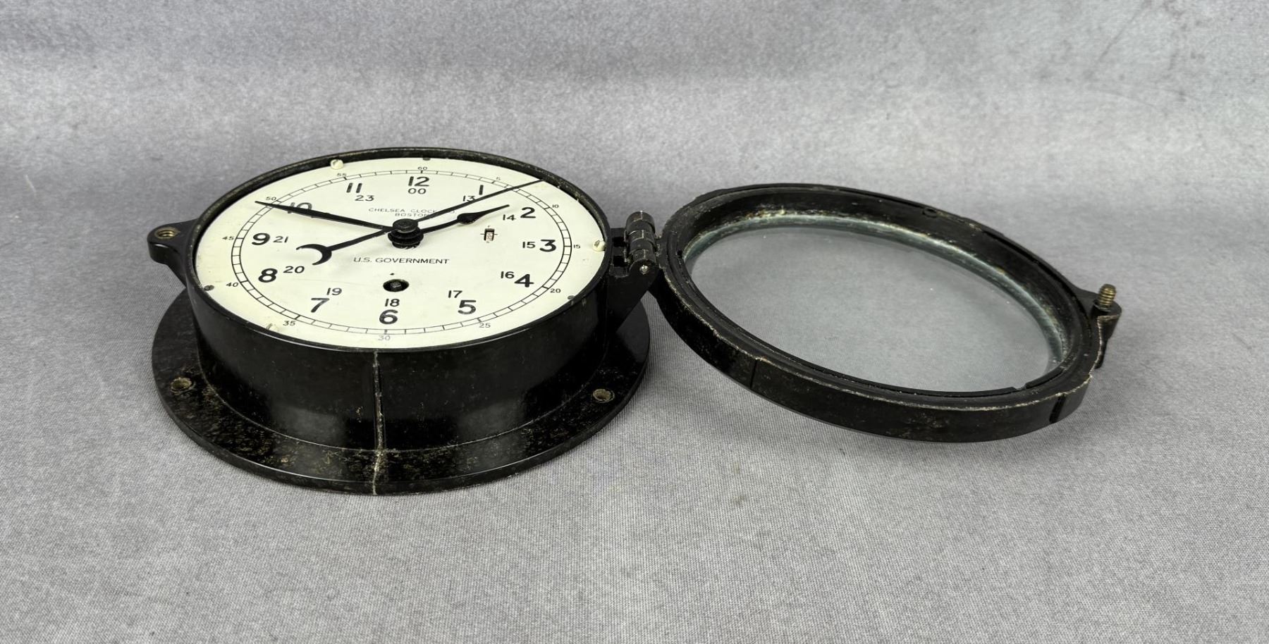 US Government marked. Bakelite case. Clock works. 6" dial.