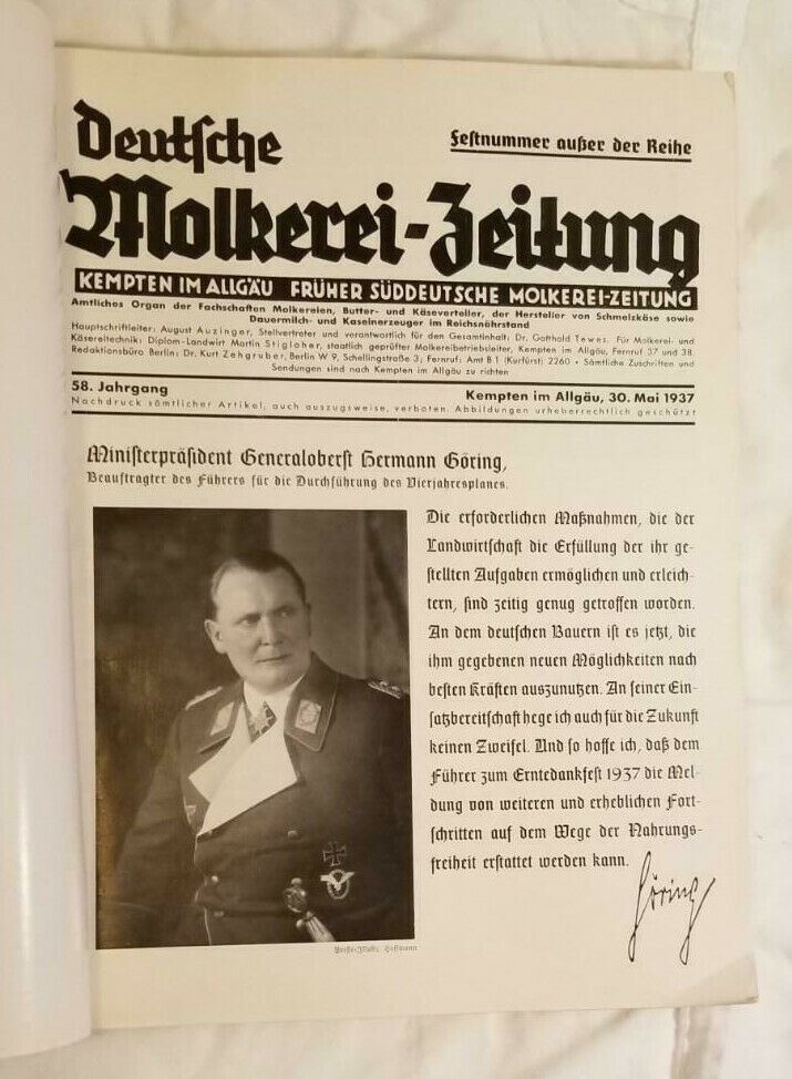 WW2 WWII German Nazi German Third Reich Book Deutsche Molkerei Zeitung 1937 Newspaper Magazine. WW2 WWII German book Deutsche Molkerei Zeitung 1937 Newspaper Magazine. Good/Used condition hard to find book! Very big thick large format publication. Be sure and check out our other militaria and collectibles auctions for more Militaria, we always combine shipping!