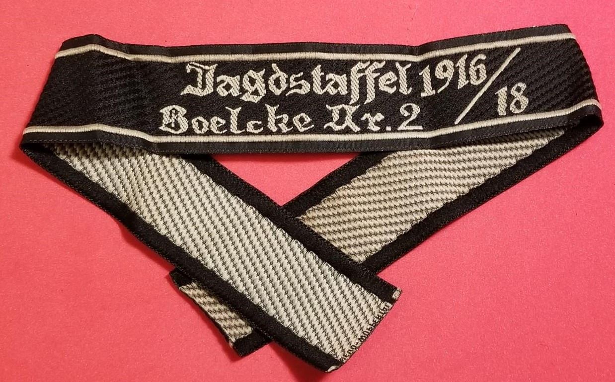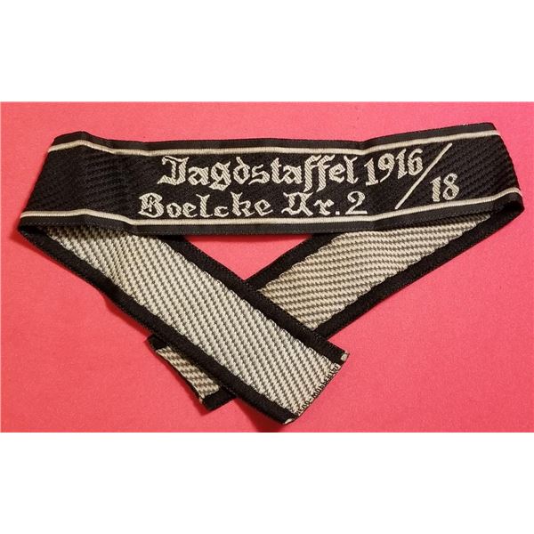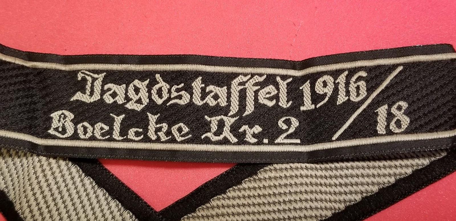 WW2 WWII Nazi German Cuff title Jagdstaffel 1916-18 Boelcke. Nice bevo insignia in VG condition w no black light glow. Be sure and check out our other militaria and collectibles auctions for more items, we always combine shipping!