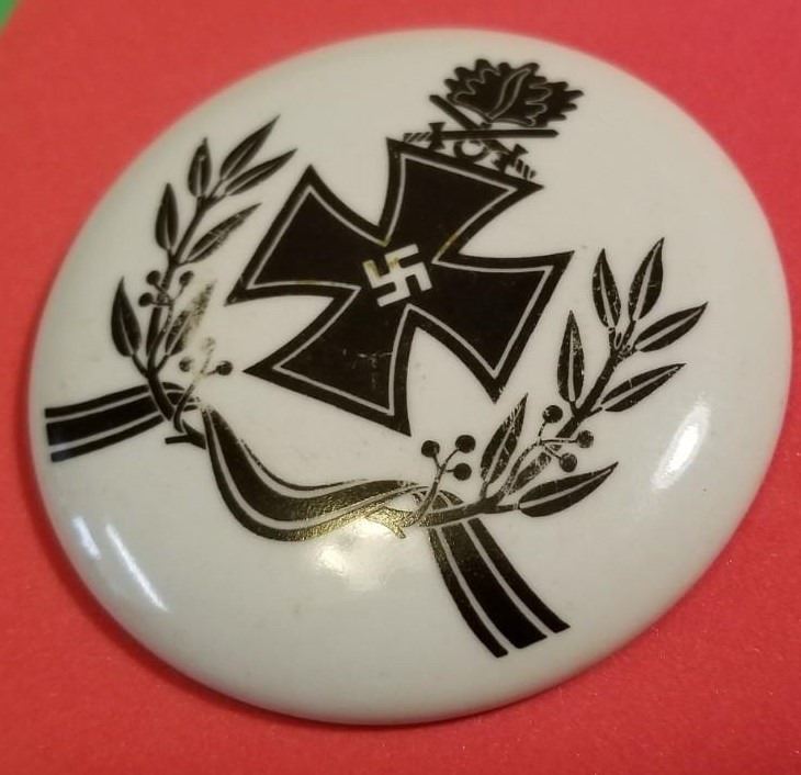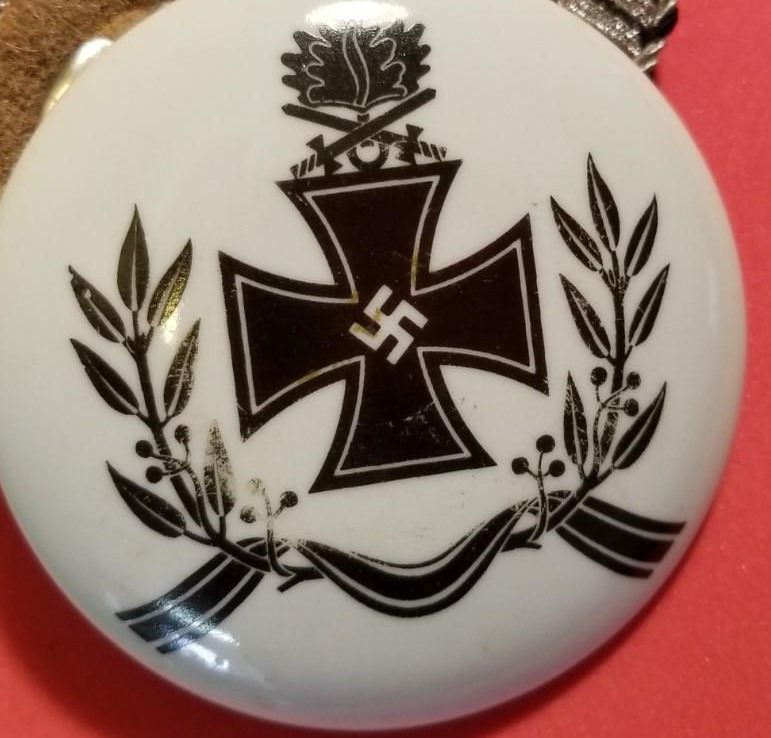 WW2 WWII Nazi German Knights Iron Cross w oak leaves Third Reich Porcelain disc. Nice piece of porcelain with the 1939 Iron Cross Knights cross with oak leaves. VG condition as shown. Be sure and check out our other militaria and collectibles auctions for more Militaria, we always combine shipping!