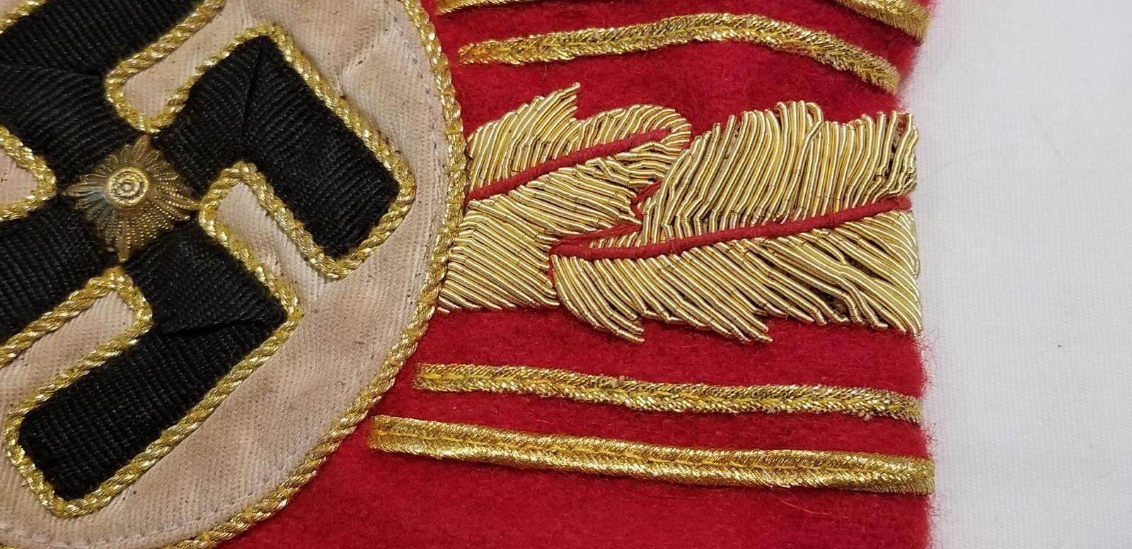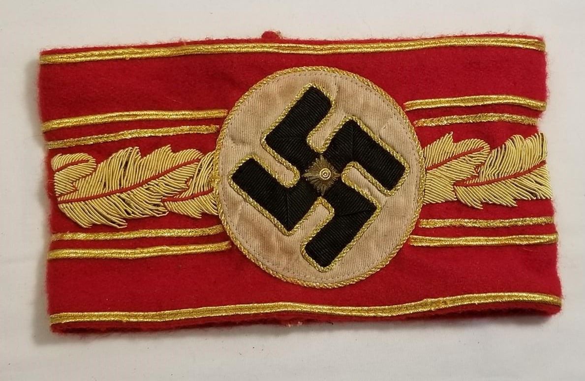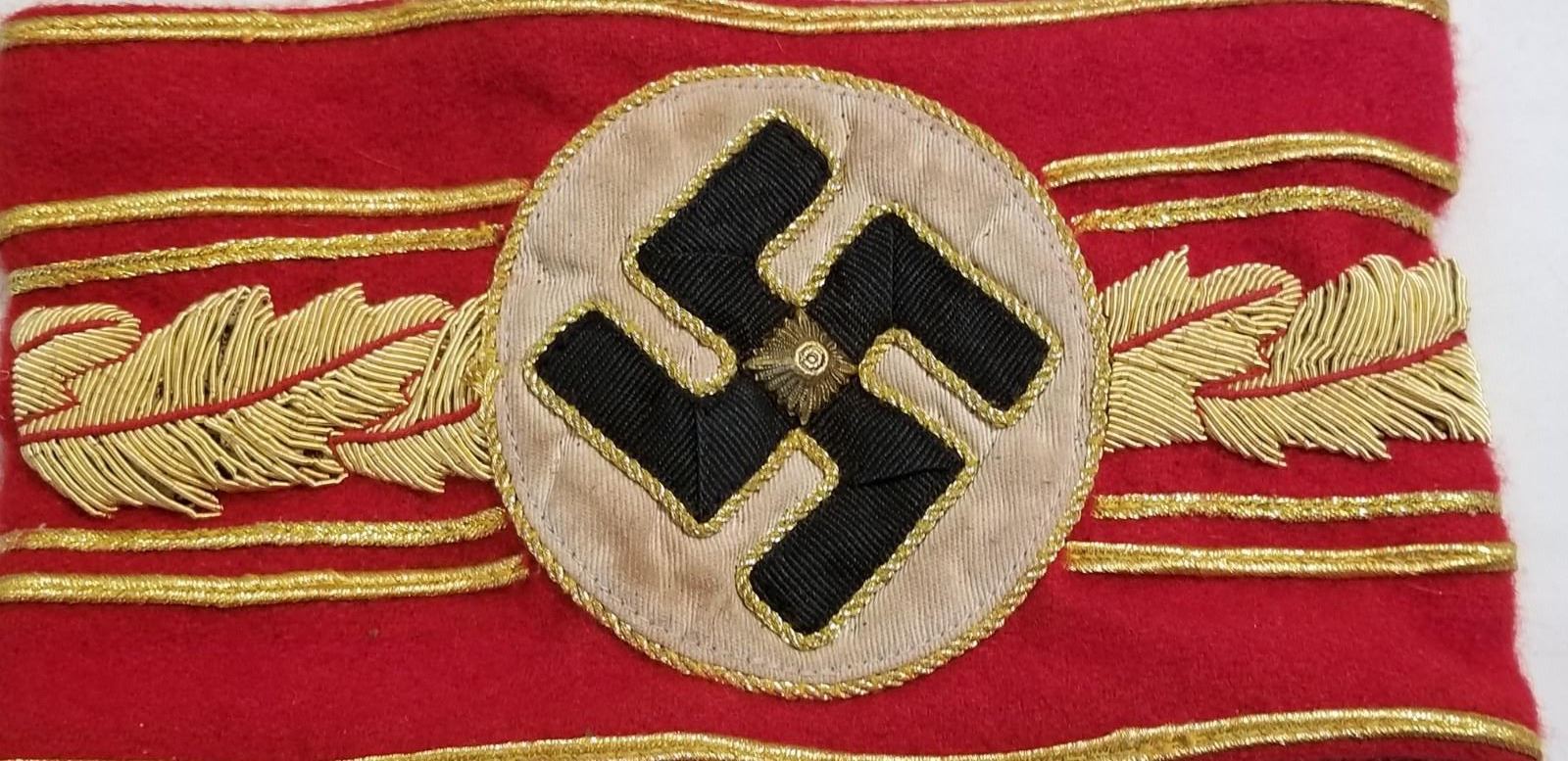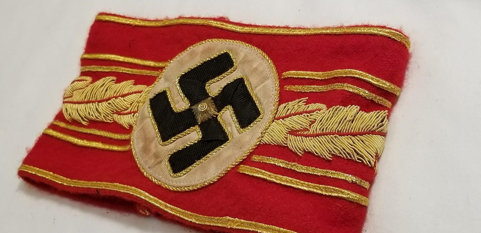 WW2 WWII Nazi German Third Reich High leaders Political armband. Nice political leaders armband. Heavy wool, multi piece sewn construction with the gold bullion heavy threads. Good/Used condition as shown. Be sure and check out our other militaria and collectibles auctions for more military related items, we always combine shipping!