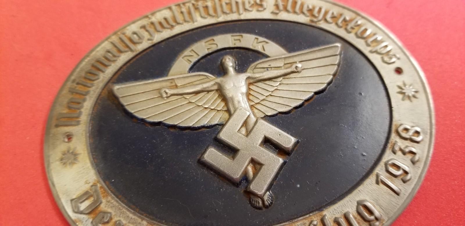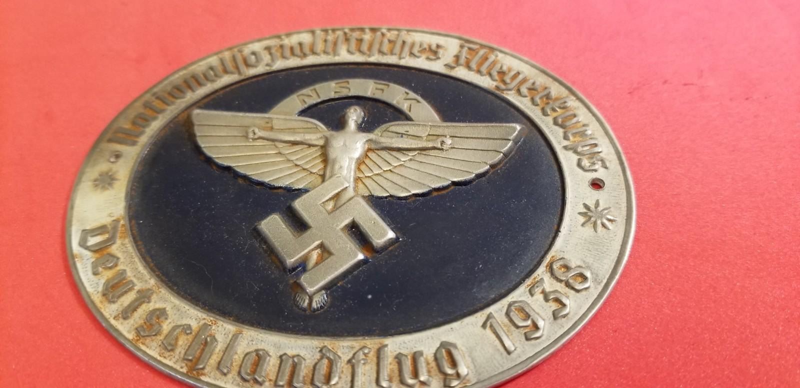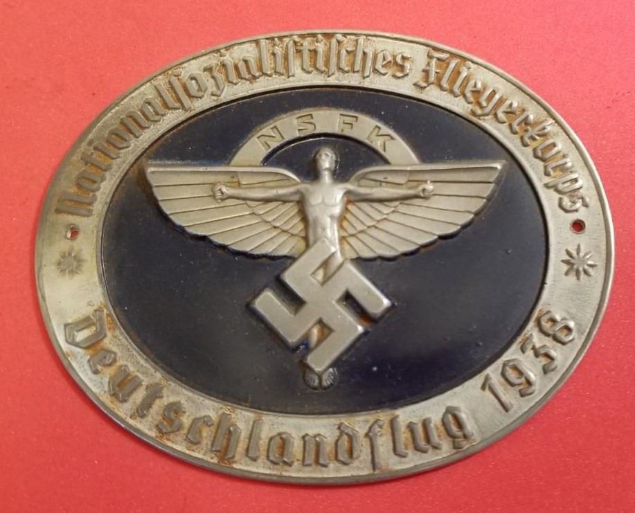 WW2 WWII Nazi German NSFK Flieger Korps Third Reich metal plaque. Nice NaS Flieger Korps flight plaque. Good condition as shown. Be sure and check out our other militaria and collectibles auctions for more items, we always combine shipping!