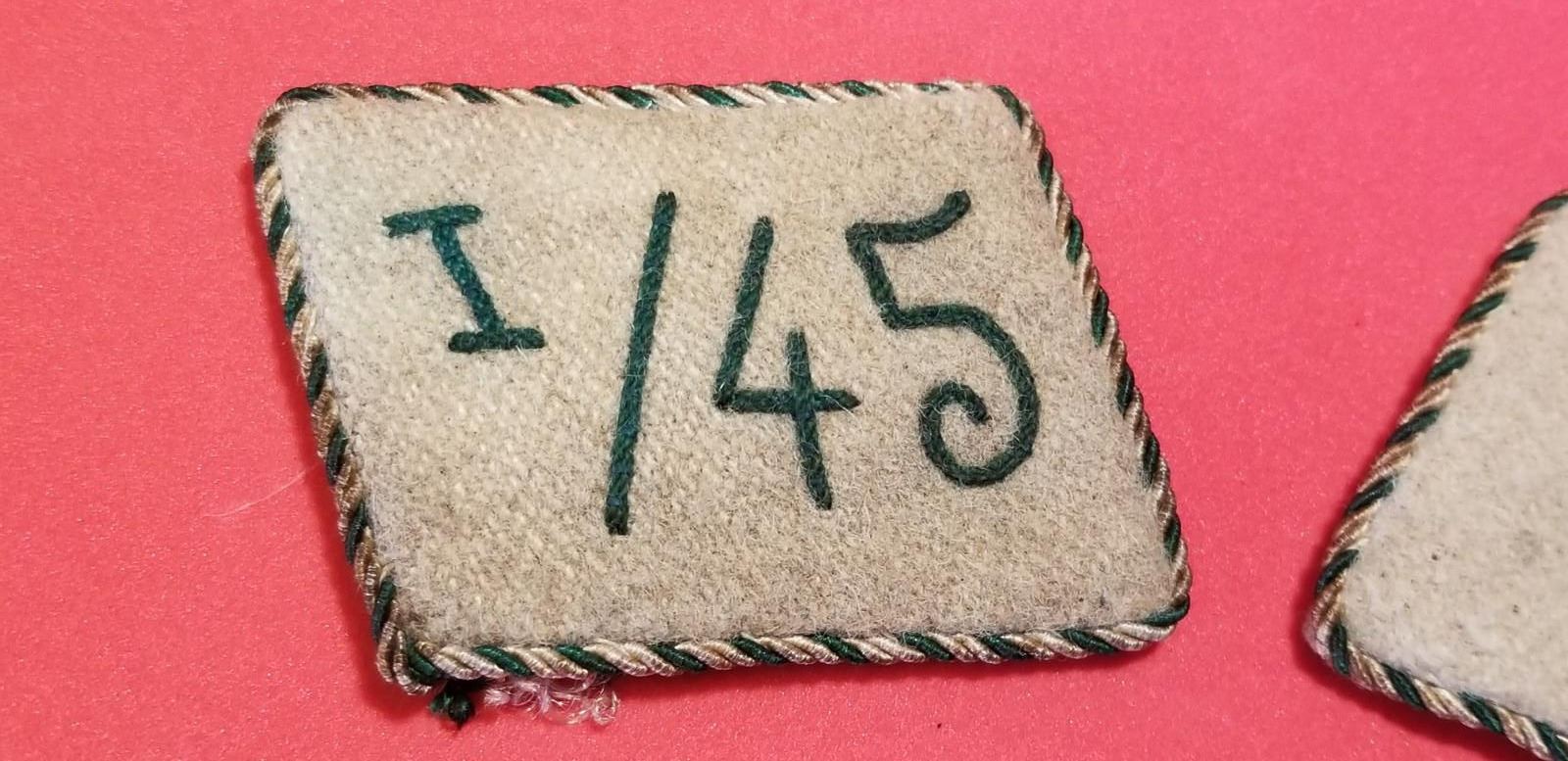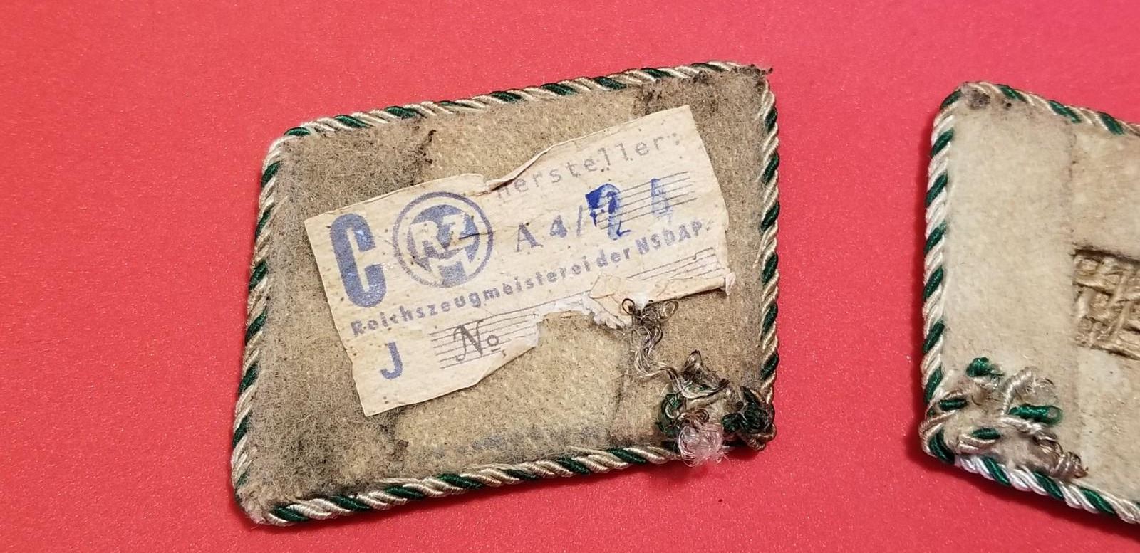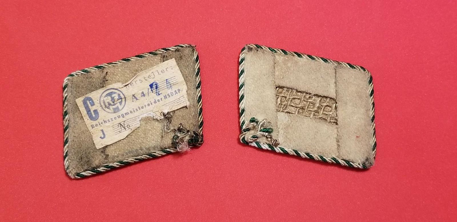 WW2 WWII Nazi German SA Sturmabteilung Third Reich Collar tabs I/45 w RZM tag. Nice early German brownshirts military group collar patches in good/used condition as shown. Be sure and check out our other militaria and collectibles auctions for more Militaria, we always combine shipping!