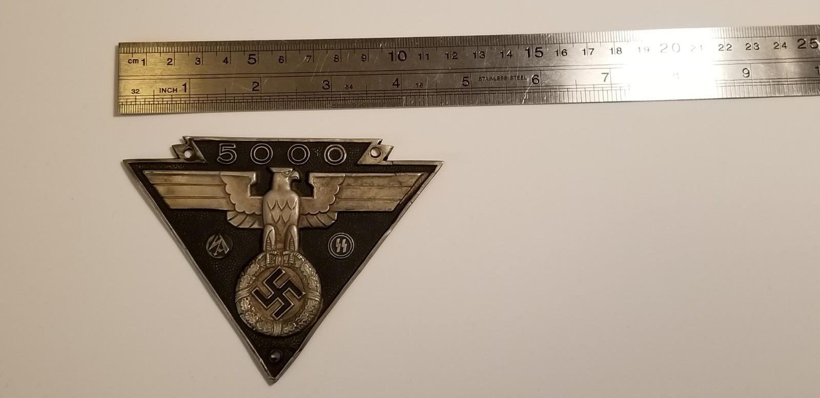 WW2 WWII Nazi German SS SA NSKK Motor Korps 5000 KM wall plaque. Nice 5000 KM plaque for the Autobahn. Nice piece in good condition as shown. Be sure and check out our other militaria and collectibles auctions for more Militaria, we always combine shipping!