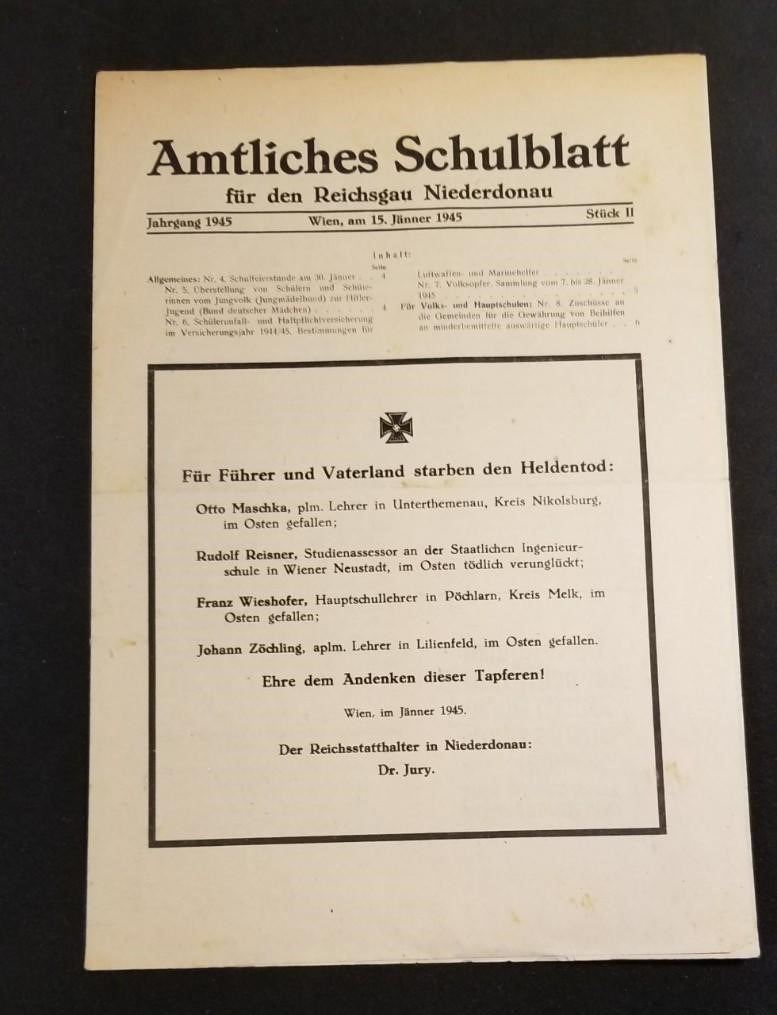 WW2 WWII Nazi German Third Reich Military school newspaper w soldiers KIA death notices. Nice paper for military school in good/used condition as shown. Be sure and check out our other militaria and collectibles auctions for more military related items, we always combine shipping!