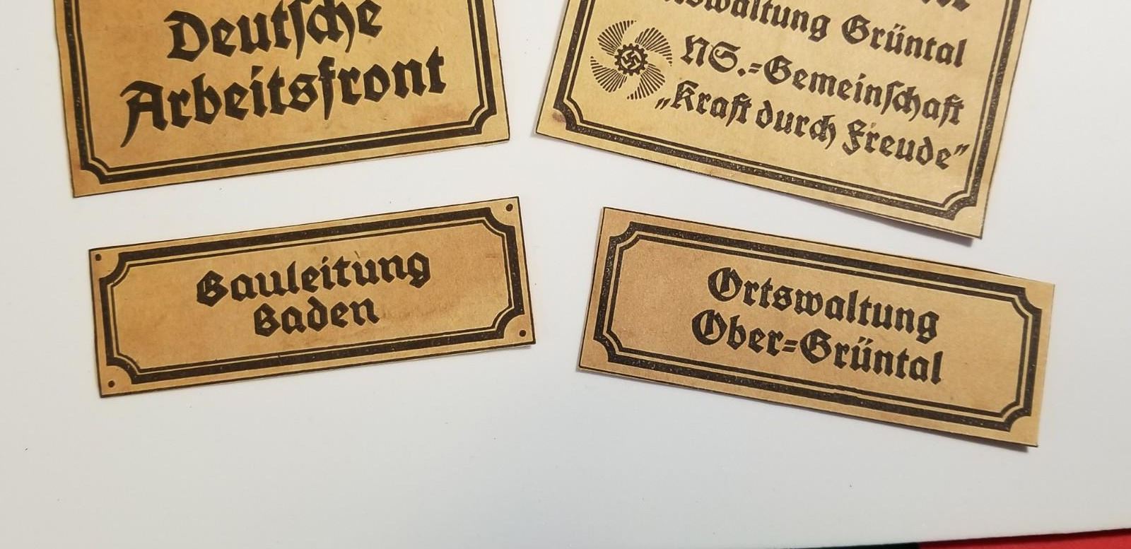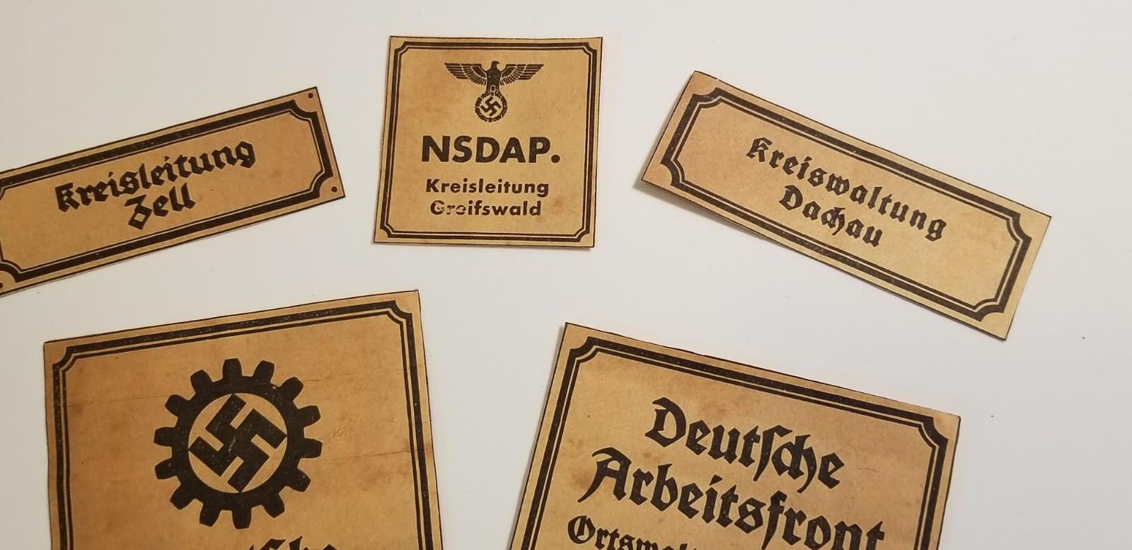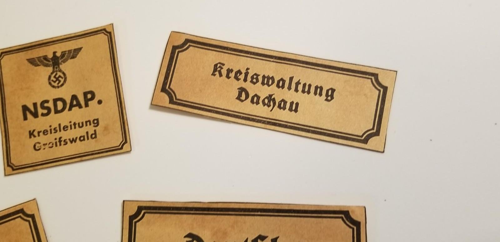 WW2 WWII Nazi German Third Reich NSDAP DAF Propaganda stamp paper lot Dachau. Interesting lot of NSDAP Deutsche Arbewitsfront paper stamps. Good condition lot with gummed backs. Possibly some kind of WHW items. Be sure and check out our other militaria and collectibles auctions for more Militaria, we always combine shipping!